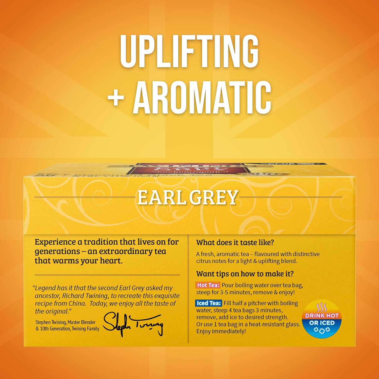 Twinings Earl Grey Black Tea Individually Wrapped Bags, 50 Count (Pack of 6), Flavoured with Citrus and Bergamot, Caffeinated, Enjoy Hot or Iced, 300 Teabags