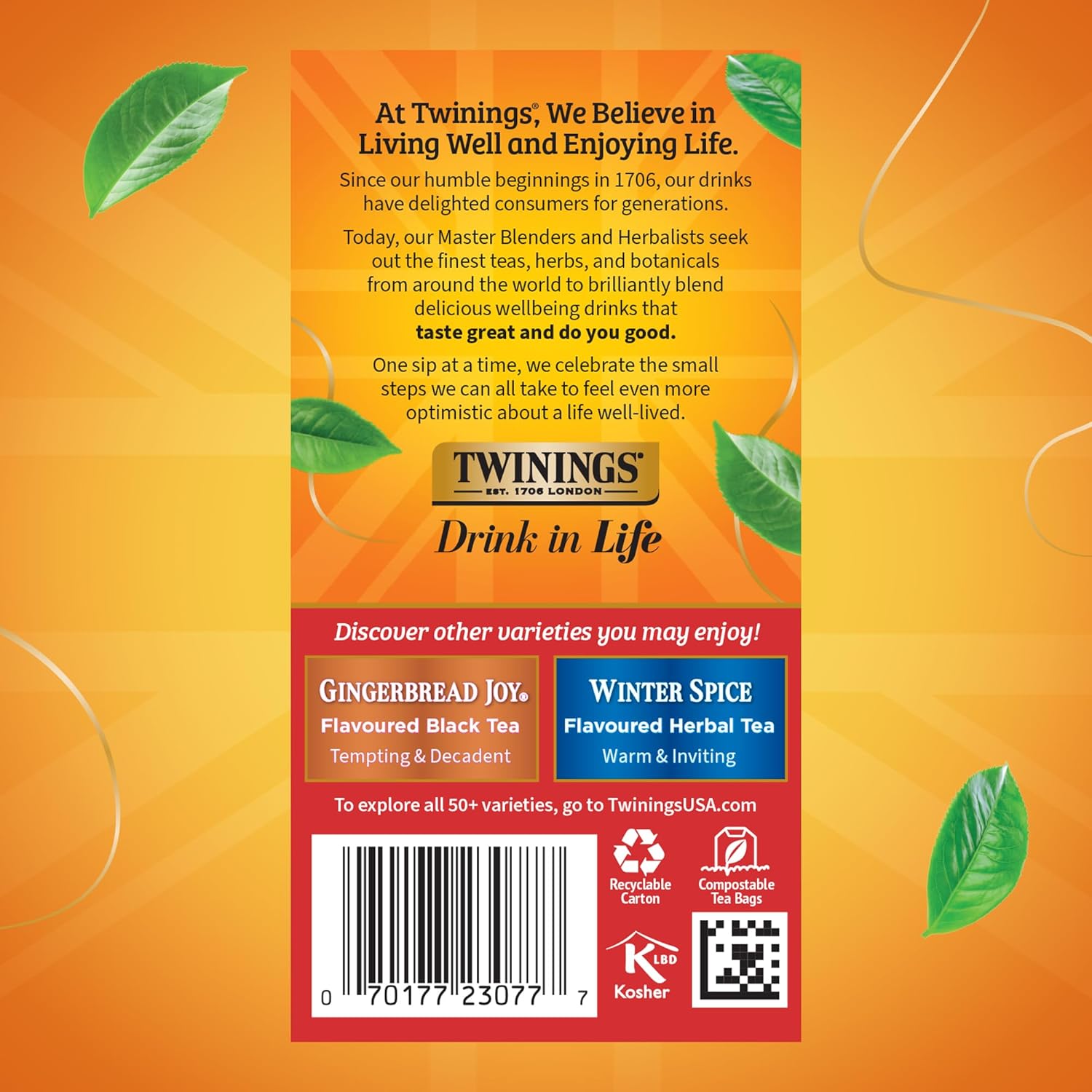- DRINK IN LIFE: With a signature blend of tradition and innovation, Twinings encourages tea lovers to "Drink In Life" by taking small steps towards feeling good and living well, one sip at a time