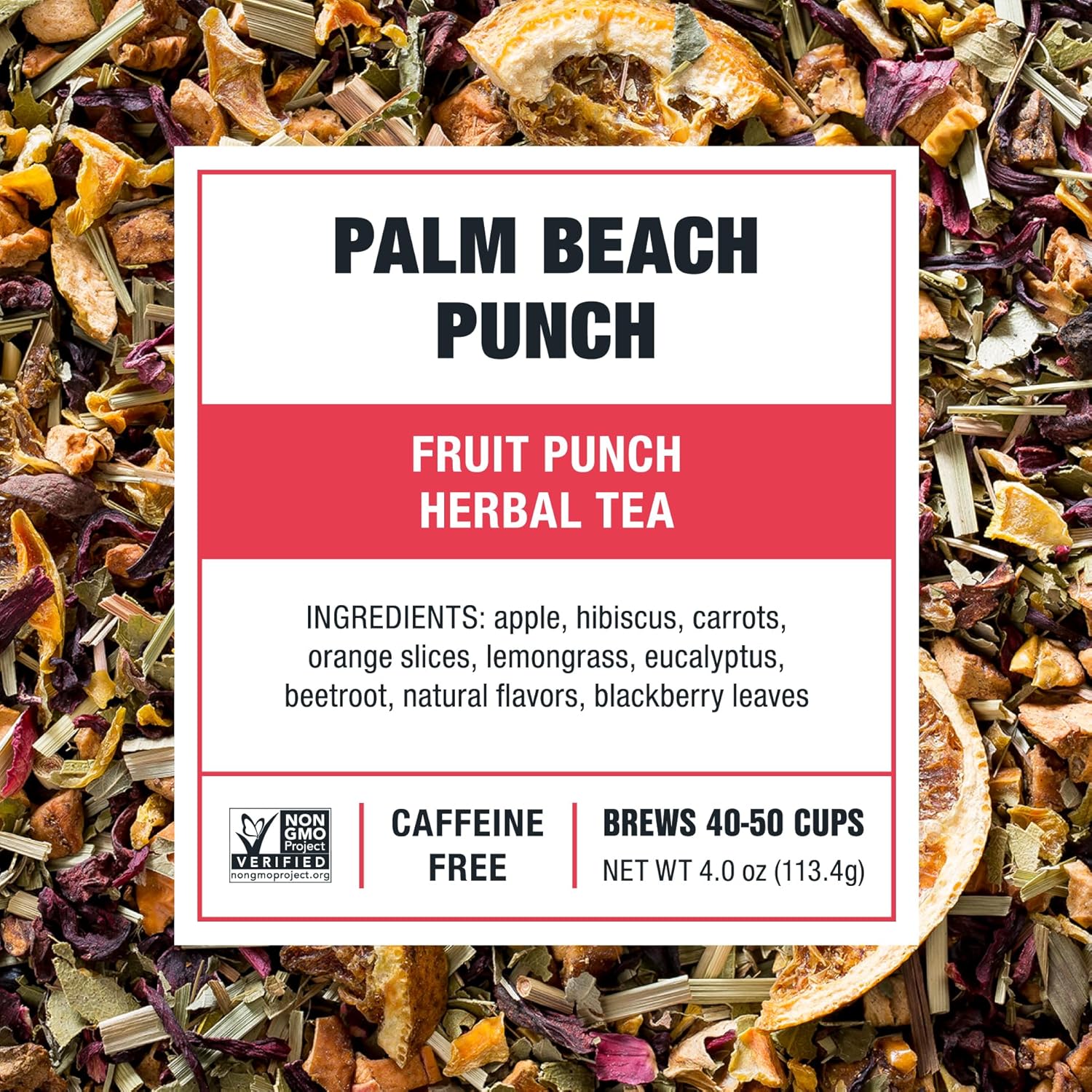 - FRUIT-FORWARD HERBAL TEA: Enjoy a refreshing tea experience with Tiesta Tea’s Palm Beach Punch. This caffeine-free blend combines apple, hibiscus, and orange with hints of lemongrass and eucalyptus, creating a naturally sweet and flavorful tea that’s great hot or iced.