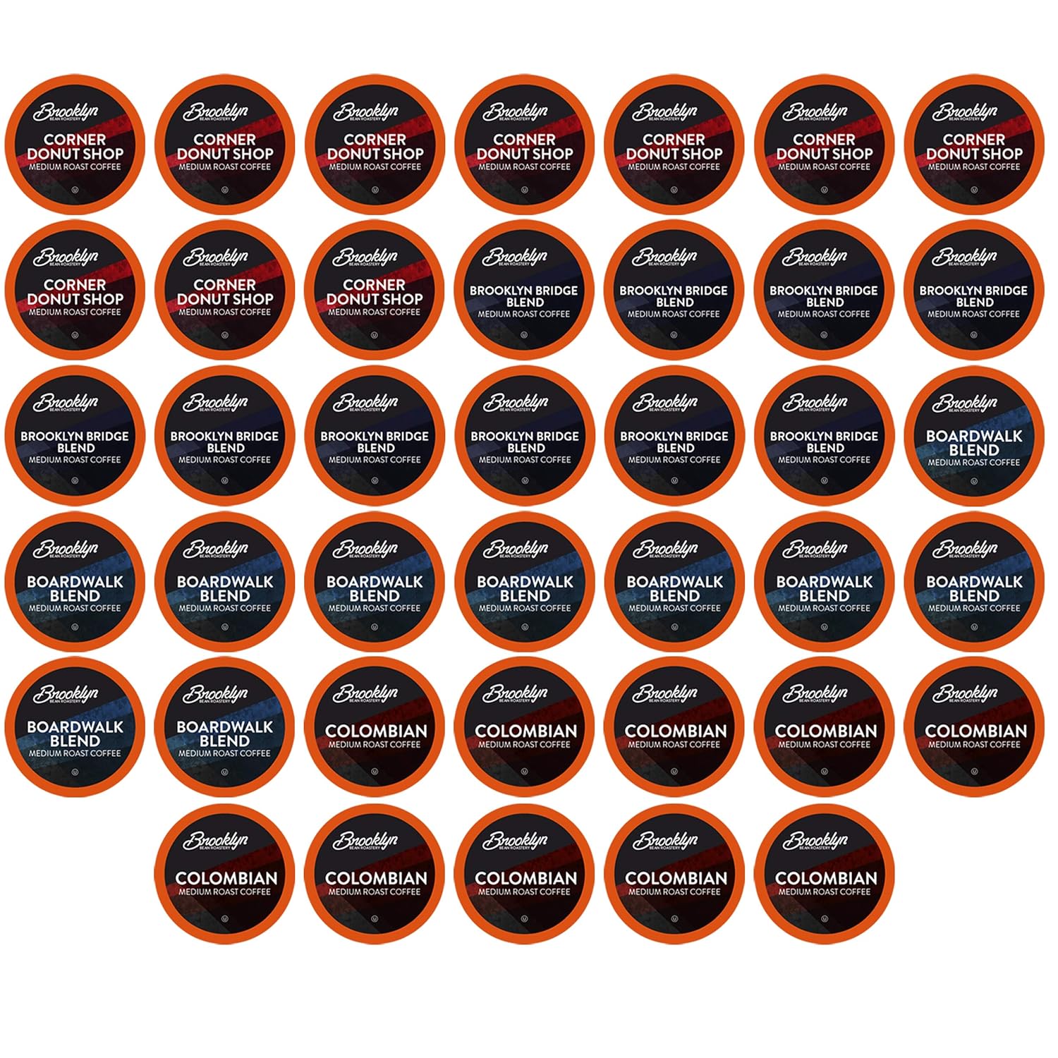 - Brooklyn Bridge Blend, Corner Donut Shop, Boardwalk Blend & Colombian