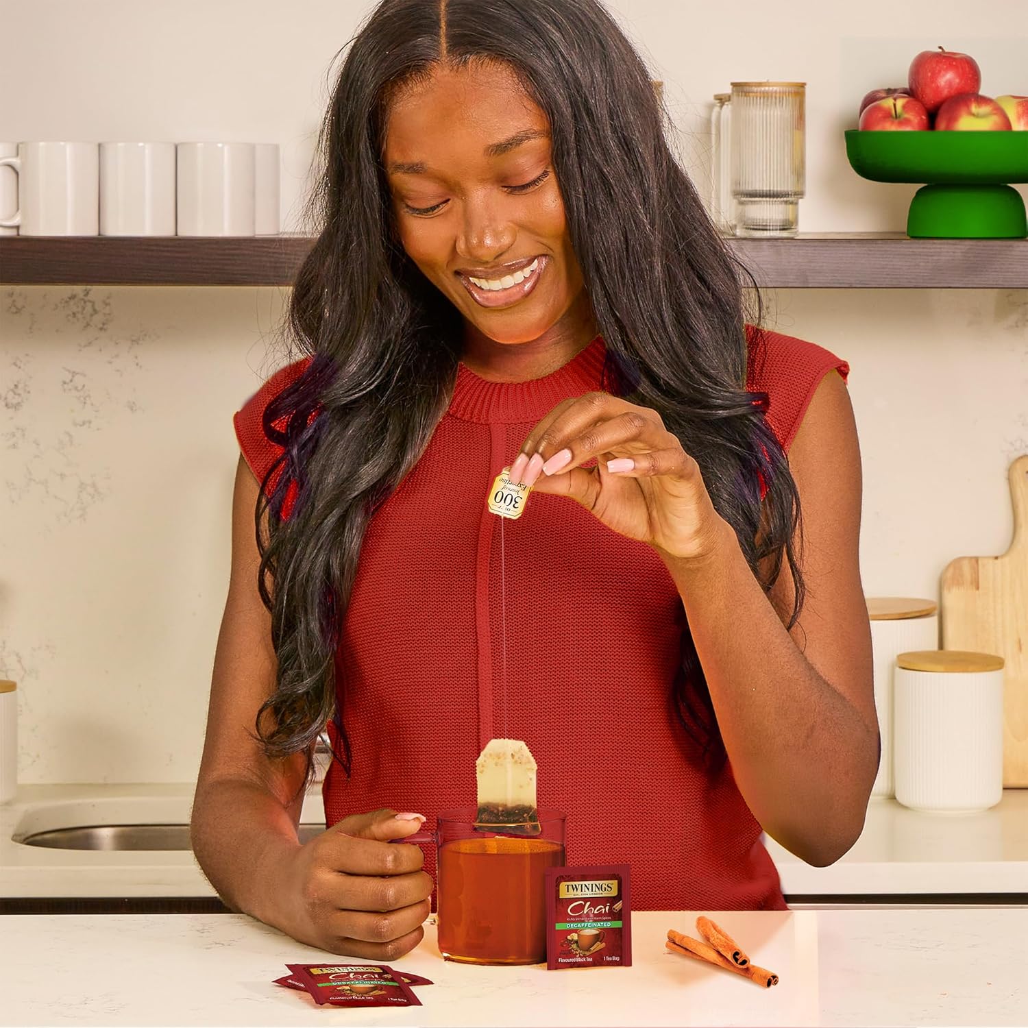 Twinings Decaffeinated Chai Individually Wrapped Bags, 20 Count (Pack of 1), Sweet, Savoury Spices, Enjoy Hot or Iced, 20 Teabags