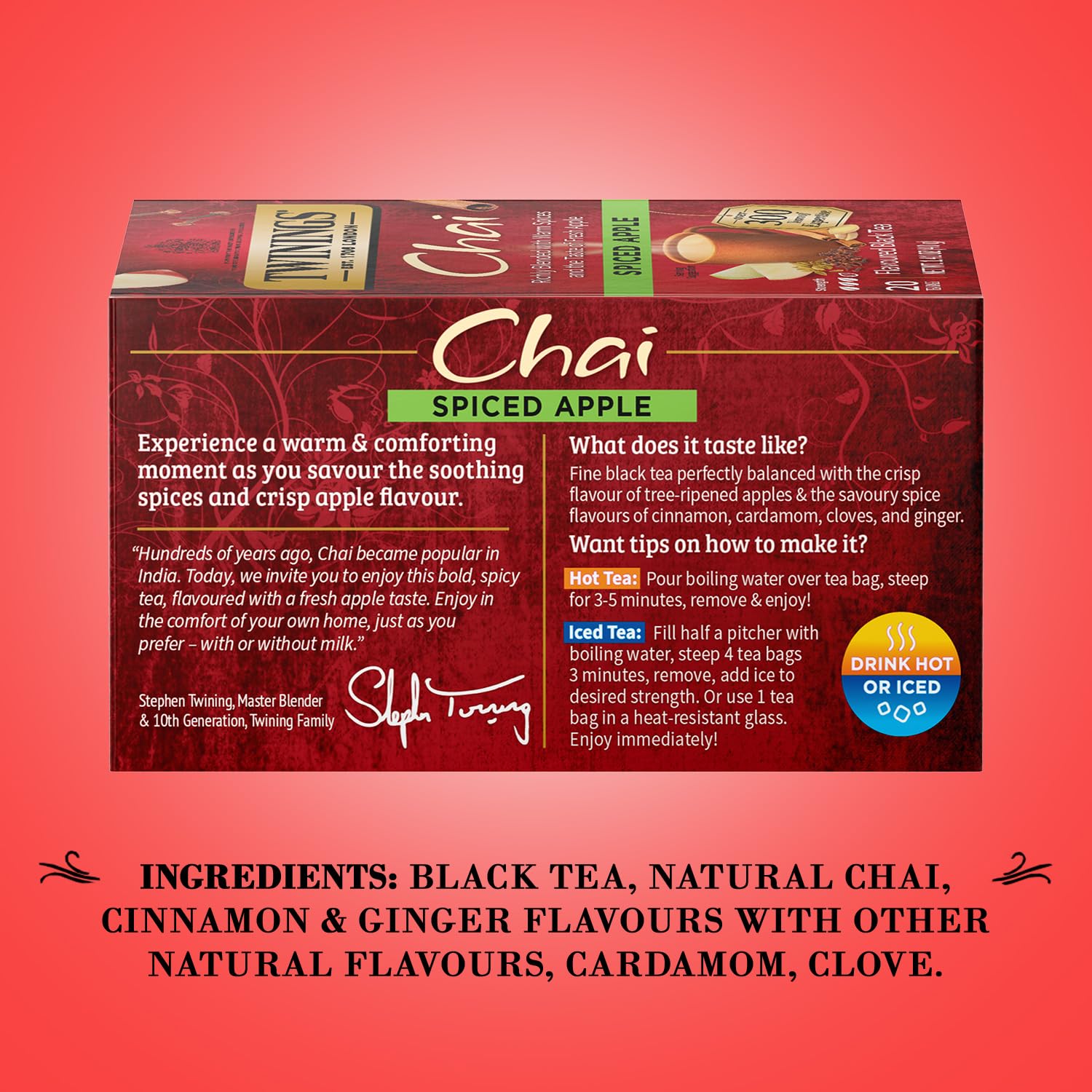 - SPICED BLACK TEA: Subtle fresh apple flavour with just the right amount of spice will take the chill away and deliver a mouth-watering tea with a rich, vibrant aroma.