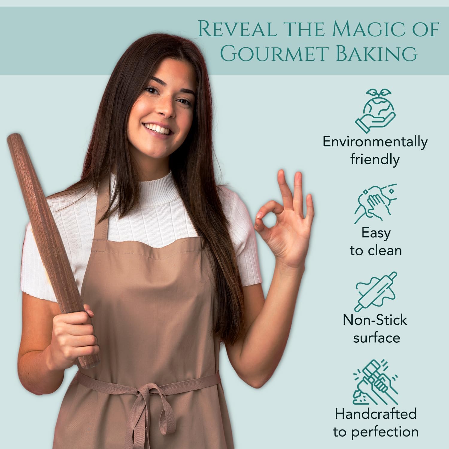 - MAHOGANY ROLLING PIN NON-STICK SURFACE :- Discover the convenience of effortless baking with our mahogany french rolling pin's non-stick surface, this innovative feature that ensures smooth and seamless rolling. The non-stick surface of the rolling pin reduces the need for excessive flour. Glide through delicate pastry work, fondant coverings, or bread dough with ease, as our Mahogany wood pin becomes your trusted companion in the kitchen.