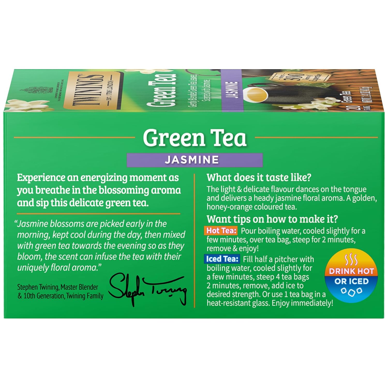 Twinings Green Tea with Jasmine Individually Wrapped Bags, 20 Count (Pack of 1), Fragrant Floral Scent, Caffeinated, Enjoy Hot or Iced, 20 Teabags