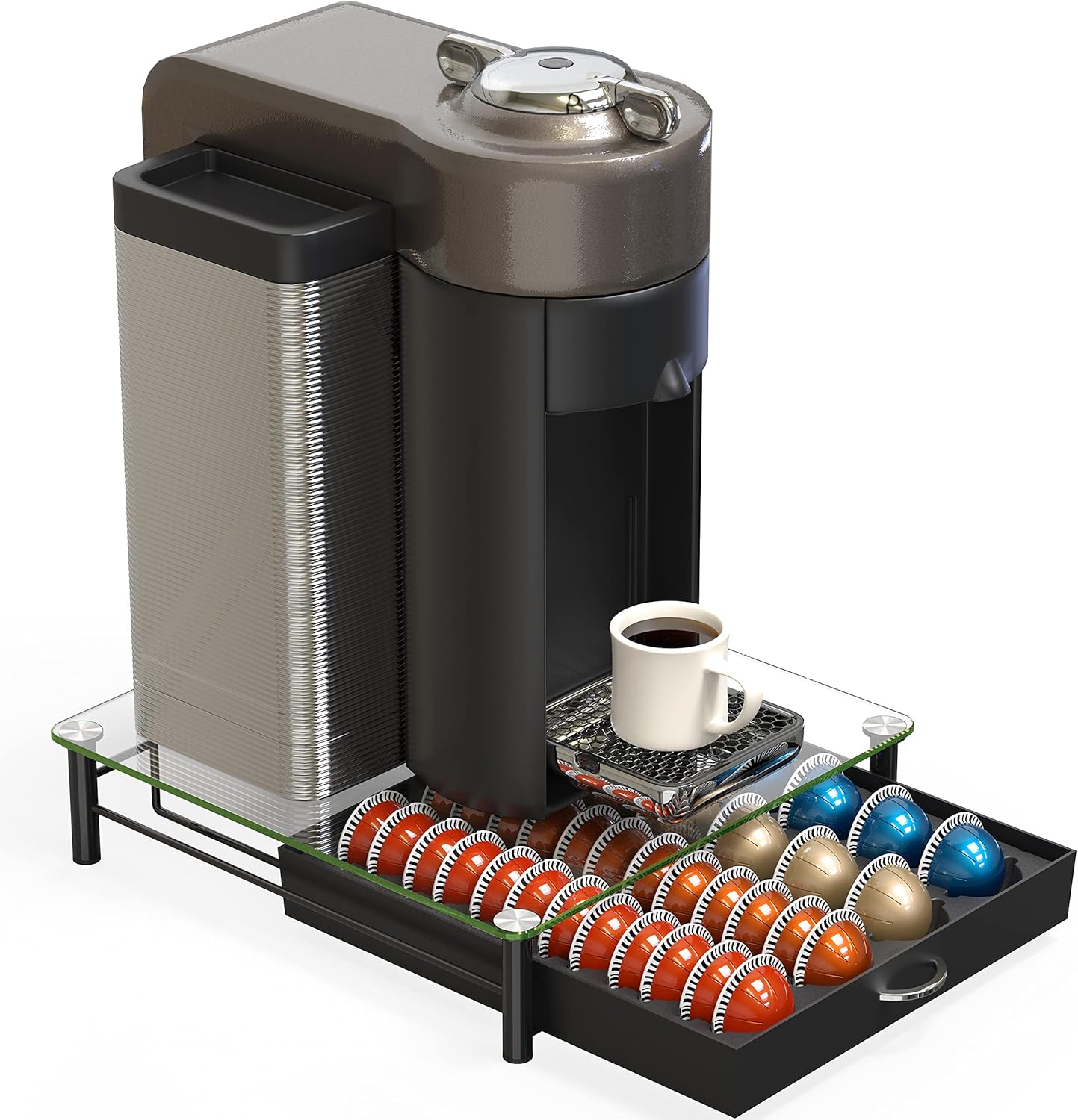 DecoBrothers Crystal Tempered Glass Vertuo Pod Holder Drawer, 24 Large or 48 Small Nespresso Capsule Organizer