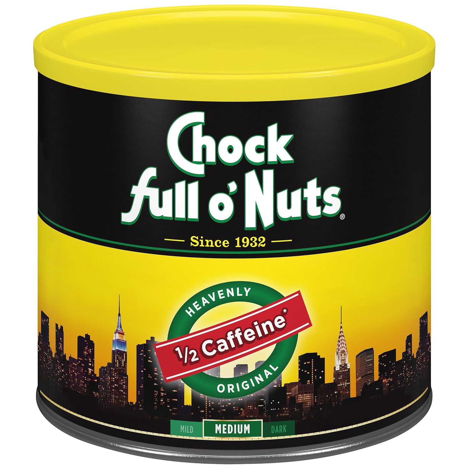 - SMOOTH & BALANCED RICHNESS: Delight in the Chock full o'Nuts Heavenly Original Half Caffeine’s full flavor and rich taste, with half the caffeine. It's perfect for when you crave a consistently satisfying cup of coffee that elevates your mornings and sharpens your afternoons.