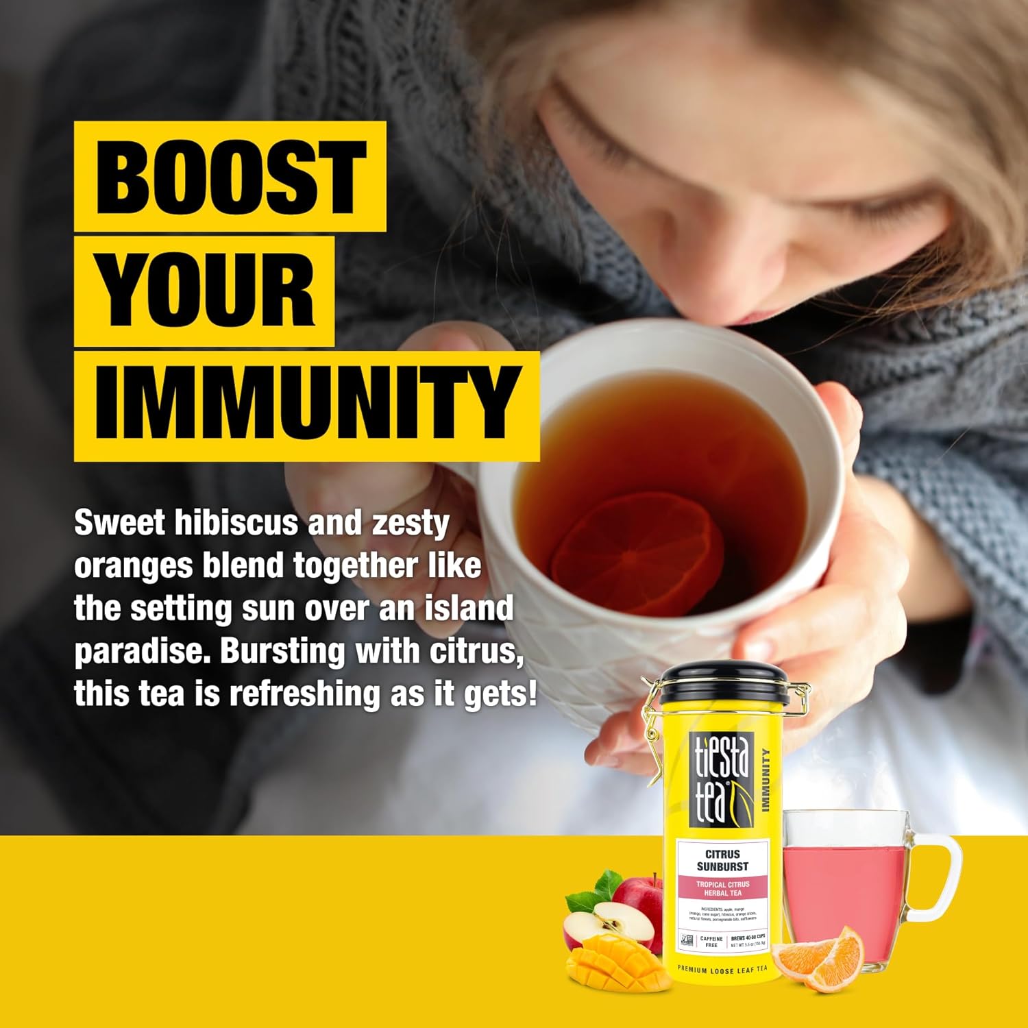 Tiesta Tea - Citrus Sunburst, Loose Leaf, Tropical Citrus Herbal Tea, Premium Non-Caffeinated Fruit Blend, Make Hot or Iced, Brews Up to 50 Cups, 5.5 Ounce Refillable Tin
