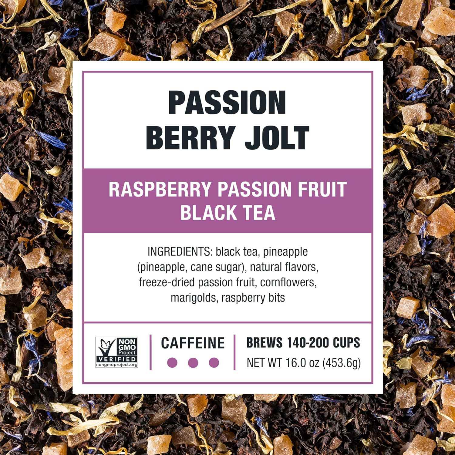 Tiesta Tea - Passion Berry Jolt, Loose Leaf, Raspberry Passion Fruit Black Tea, Premium Blend, Caffeinated Black, Make Hot or Iced Brews Up to 200 Cups, 16oz Resealable Bulk Pouch