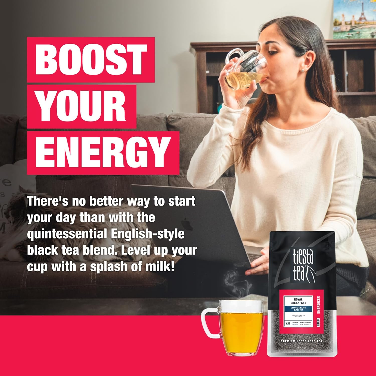 Tiesta Tea - Royal Breakfast, Loose Leaf, Classic English Black Tea, Premium High Caffeine Hot & Iced, Brews up to 200 Cups, 16oz Resealable Bulk Pouch