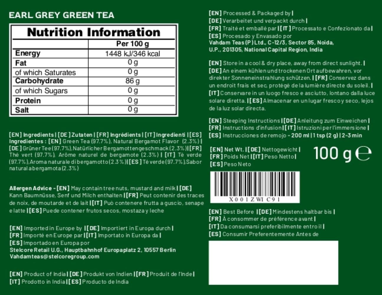 VAHDAM, Earl Grey Citrus Green Tea Loose Leaf (50+ Cups, 3.5 oz) Loose Leaf Earl Grey Green Tea With Pure Bergamot Oil | High Elevation Grown | Vacuum Sealed for Freshness