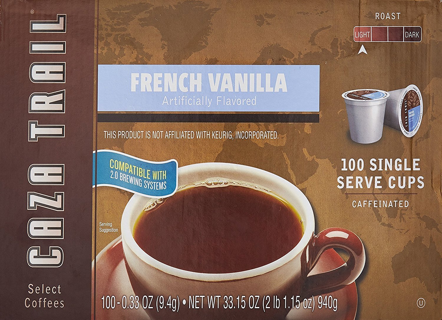 Caza Trail Coffee Pods, French Vanilla Blend, Single Serve (Pack of 100) (Packaging May Vary)