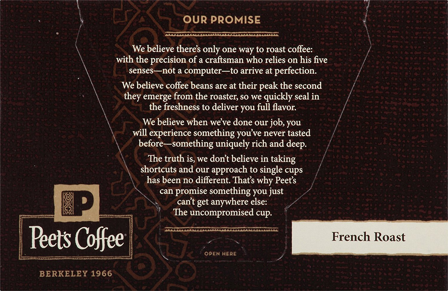 - PEET’S COMMITMENT: To achieve our signature rich flavor, we source the world’s best coffee beans, hand-roast them in small batches, and uphold the strictest standard of freshness