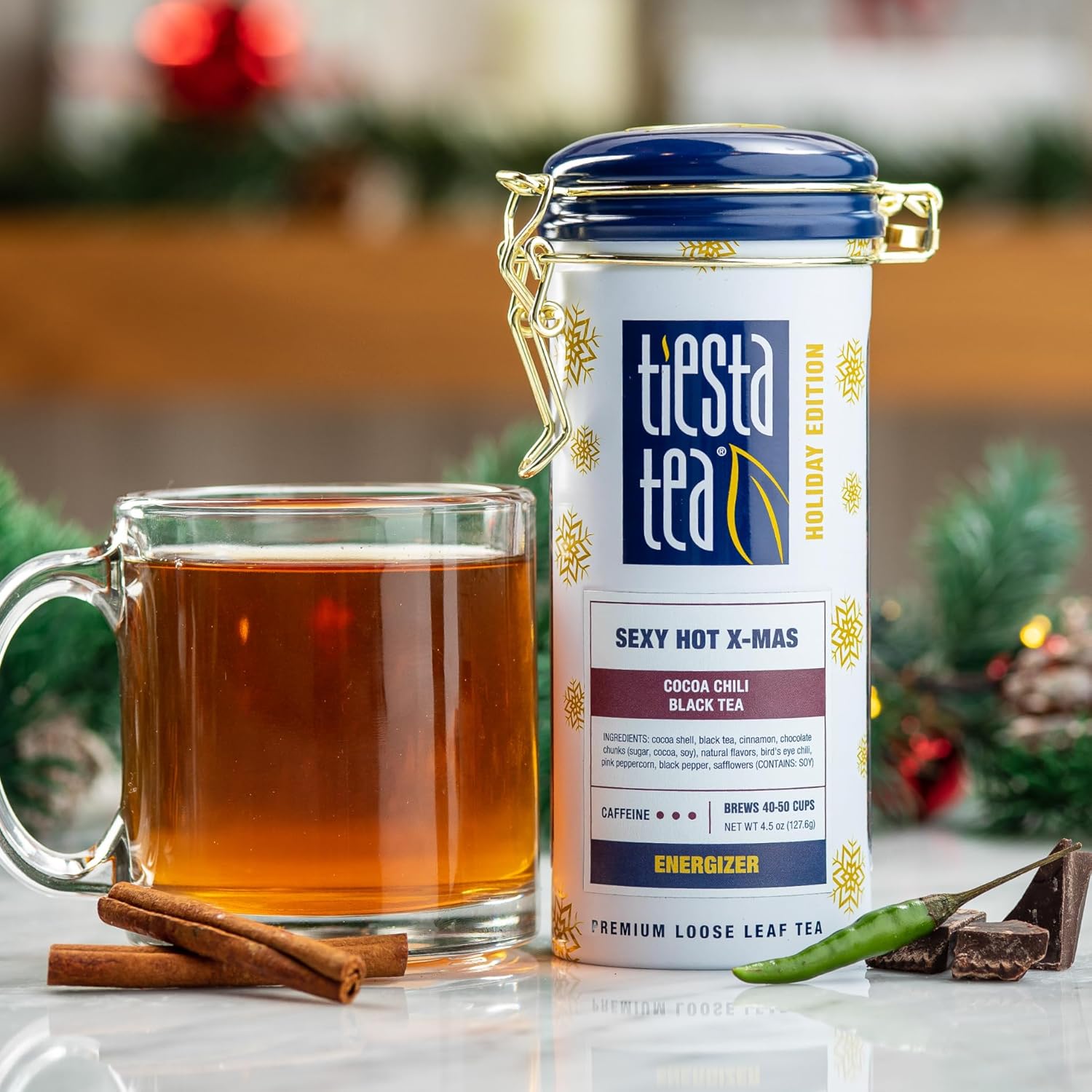 Tiesta Tea - Sexy Hot Christmas Tea, Loose Leaf, Cocoa Chili Black, Premium High Caffeinated Blend, Spicy Black, Make Hot or Iced, Brews Up to 50 Cups, 4.5 Ounce Refillable Tin