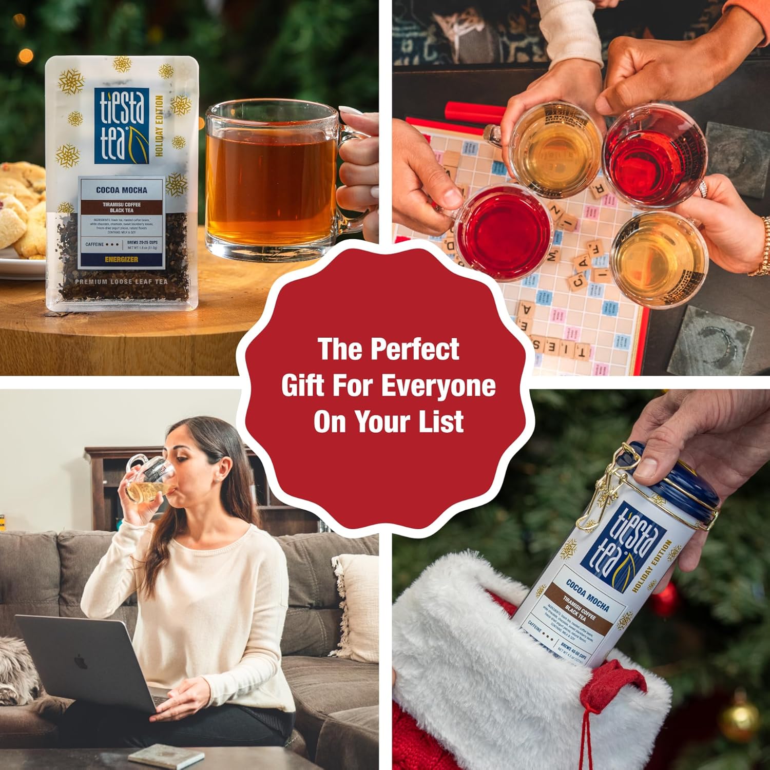 - COCOA MOCHA BLEND: Embrace the warmth of the season with this indulgent blend of loose leaf black tea, roasted coffee beans, and rich chocolate. Perfect for winter, this cozy, tiramisu-inspired tea is a caffeine-free treat, enjoyed hot or iced, and sweetened to taste.