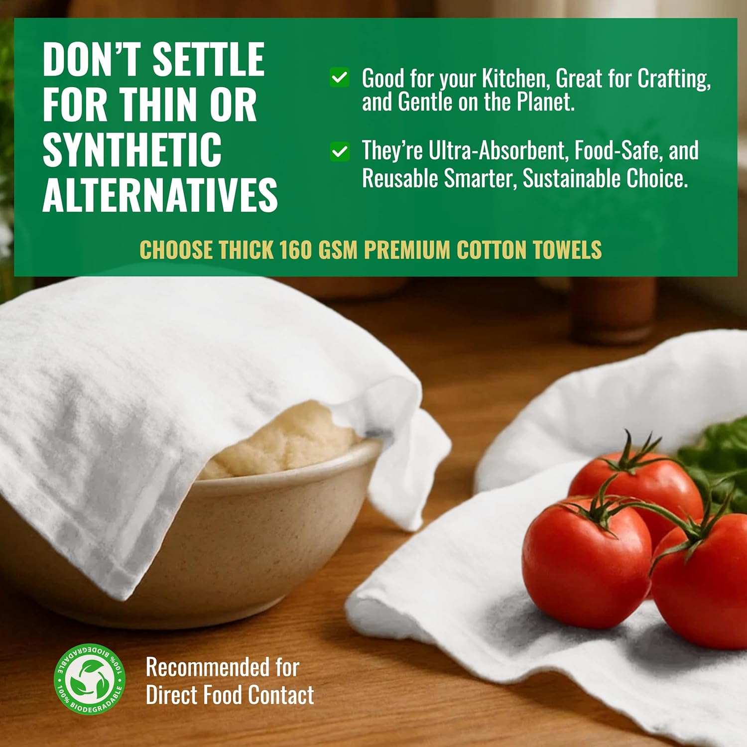 - ECO-FRIENDLY AND FUNCTIONAL : Embrace sustainability by choosing towels that efficiently diminish the reliance on paper towels, thereby supporting the conservation of trees. These flour sack towels serve as kitchen towels, shop towels, beard towels, dust towels and more. They are excellent for polishing silver and wine glasses. Whether you need to dry, wipe, clean, or dust, these towels are perfect.