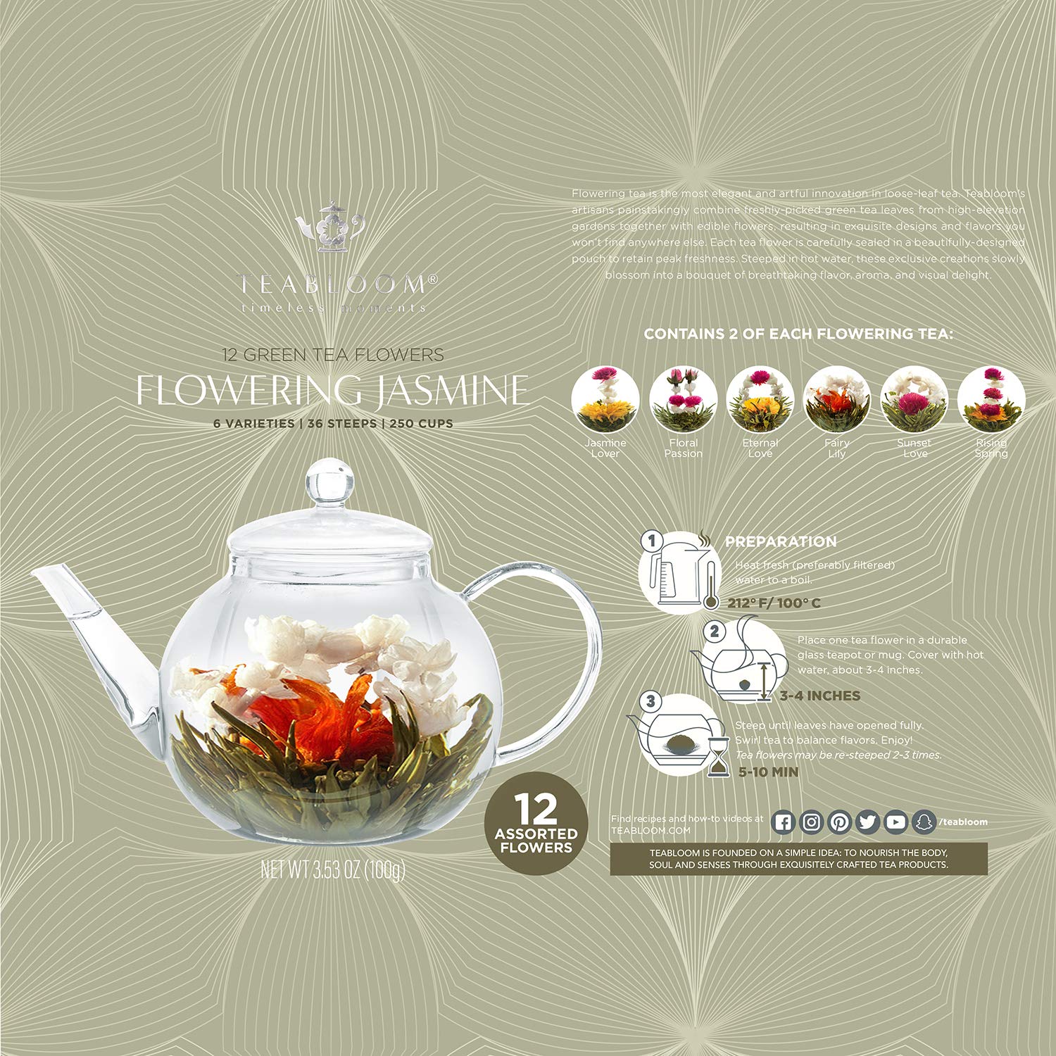 - THE BEST WAY TO EXPERIENCE BLOOMING TEA. This beautiful tea gift set of 12 green tea blossoms features a selection of flavors and aromas sure to delight every tea lover’s palate. Each flowering bouquet is hand tied by skilled Teabloom tea artisans.