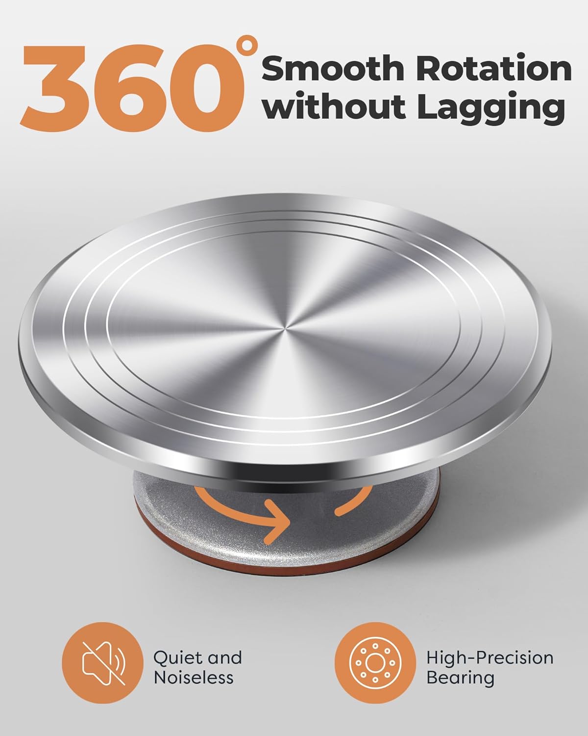 - Cake Turntable for Party: Constructed with heavy-duty aluminium alloy provides excellent stability on countertops, keeps the cake stand from moving. Non-slip surface & rubber feet to help keep your cake and cake decorating stand in place while decorating.