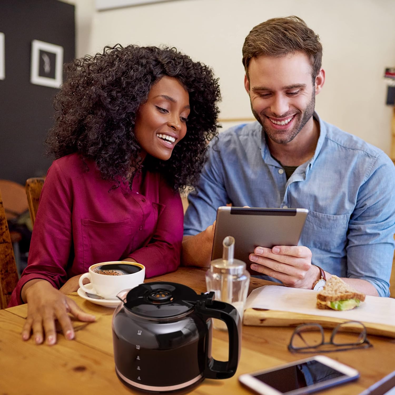 - Keep Hot Carafe Plate: The coffee pot 12 cup has a nonstick carafe plate that keeps coffee warm after the coffee brewer completes.