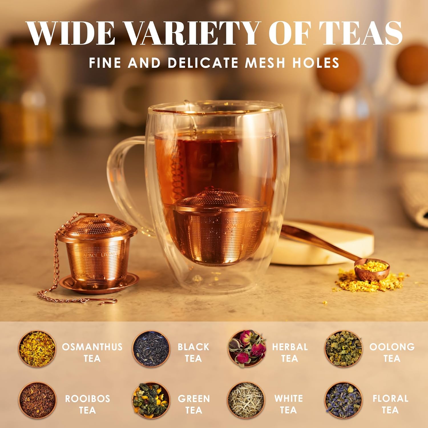 - ✔ UNLOCK NEW FLAVORS – THE ONLY TEA STRAINER WITH ADVANCED Ultra-Mesh Technology: We tested endless iterations of micro-hole positioning and basket size before creating the ONLY ultra fine loose leaf teas strainer that UNLOCKS EVERY LAYER of AROMA & FLAVOR.