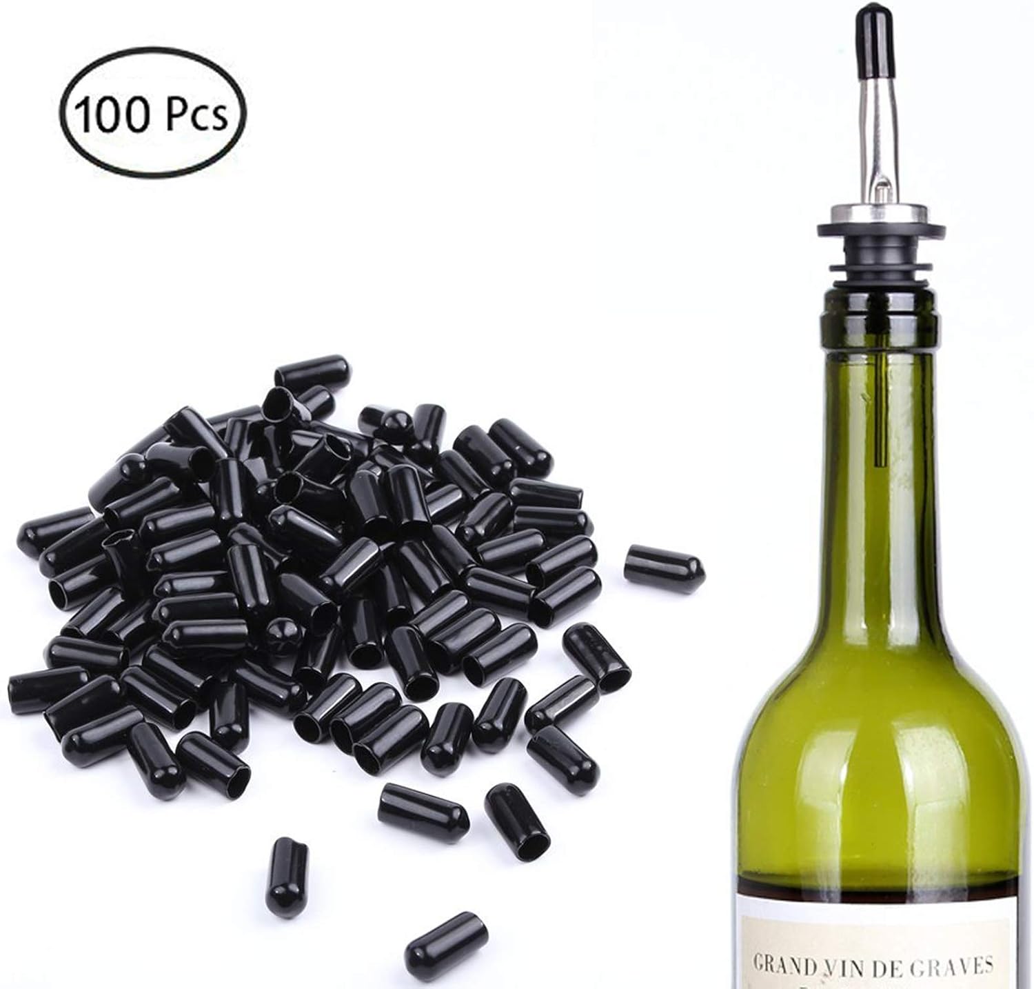 100 Pcs Pourers Dust Covers Olive Oil Liquor Bottle Pour Spout Cover Rubber Caps (Not Include the Spout)