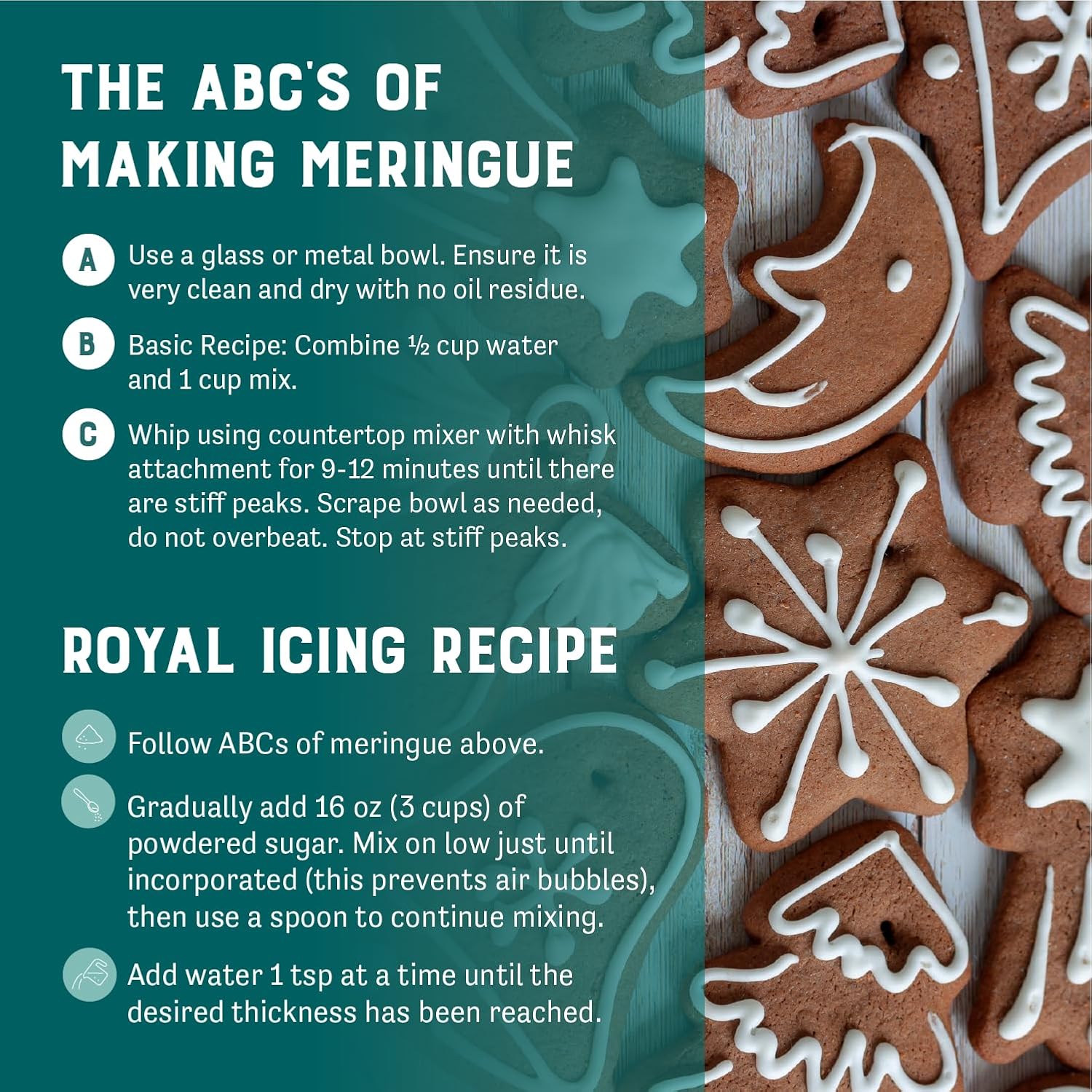 - Convenient Baking Mix: Simply add water to create your favorite meringue cookies, pies, and frosting. For royal icing, combine this meringue powder for royal icing mix with powdered sugar after whipping to stiff peaks, with superfine sugar included