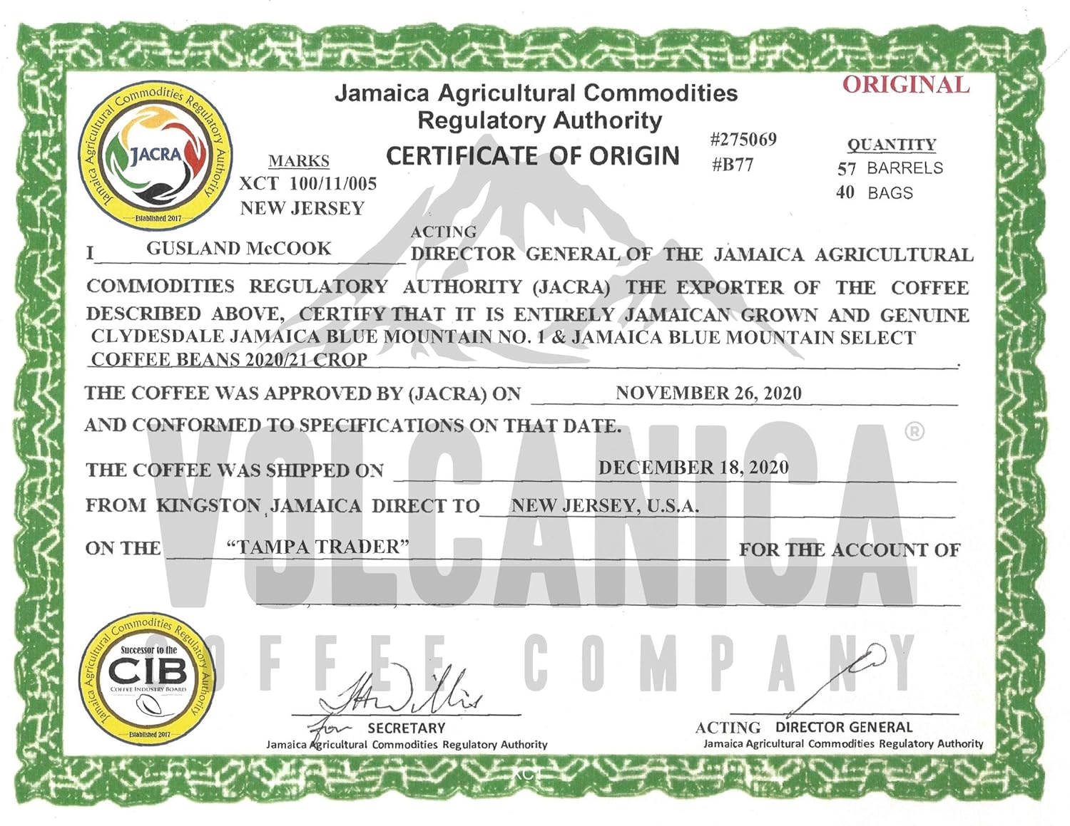 - 100% Pure Jamaica Blue Mountain Coffee Beans Certified by the Jamaica Agricultural Commodities Regulatory Authority for a pure authentic taste.