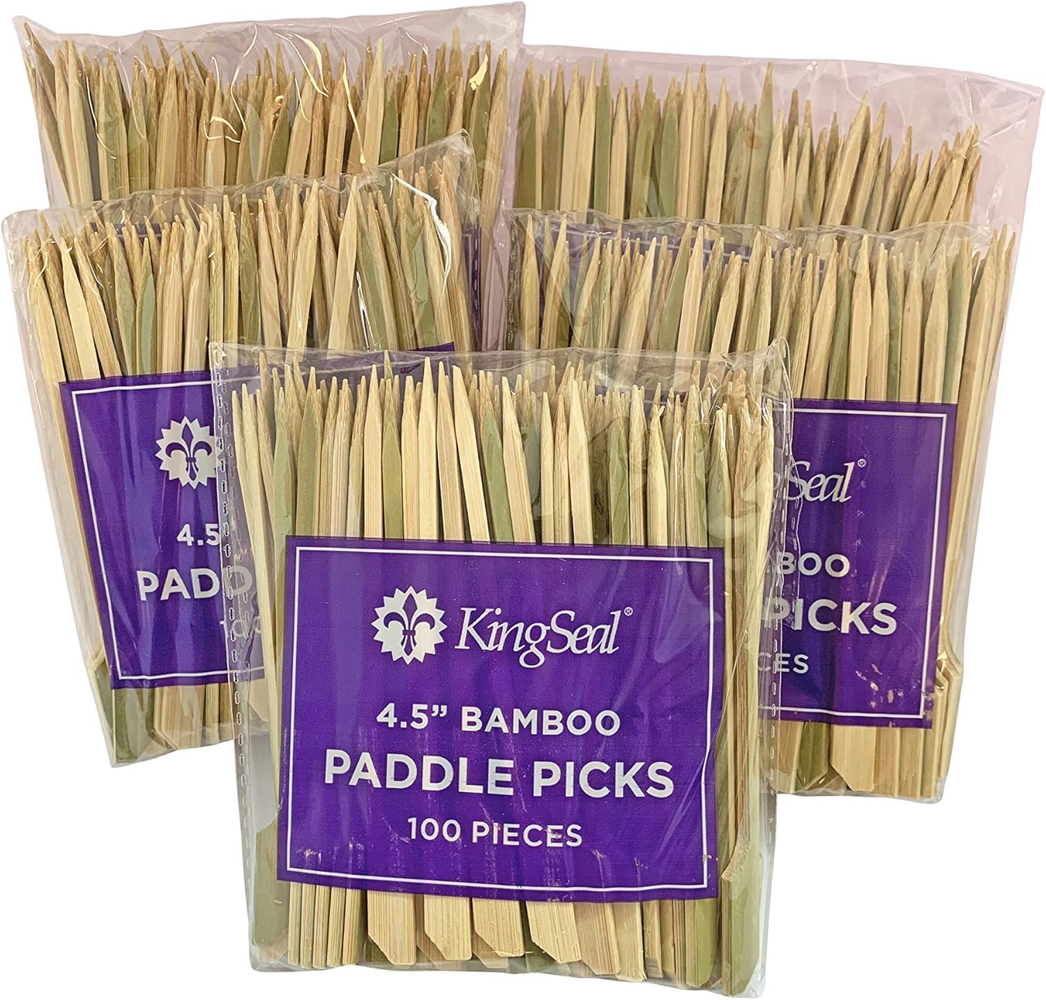 1000 Count | KingSeal Natural Green Bamboo Wood Paddle Picks, Skewers for Appetizers and Cocktails, 4.5 Inches, Bulk Pack - 10 Packs of 100