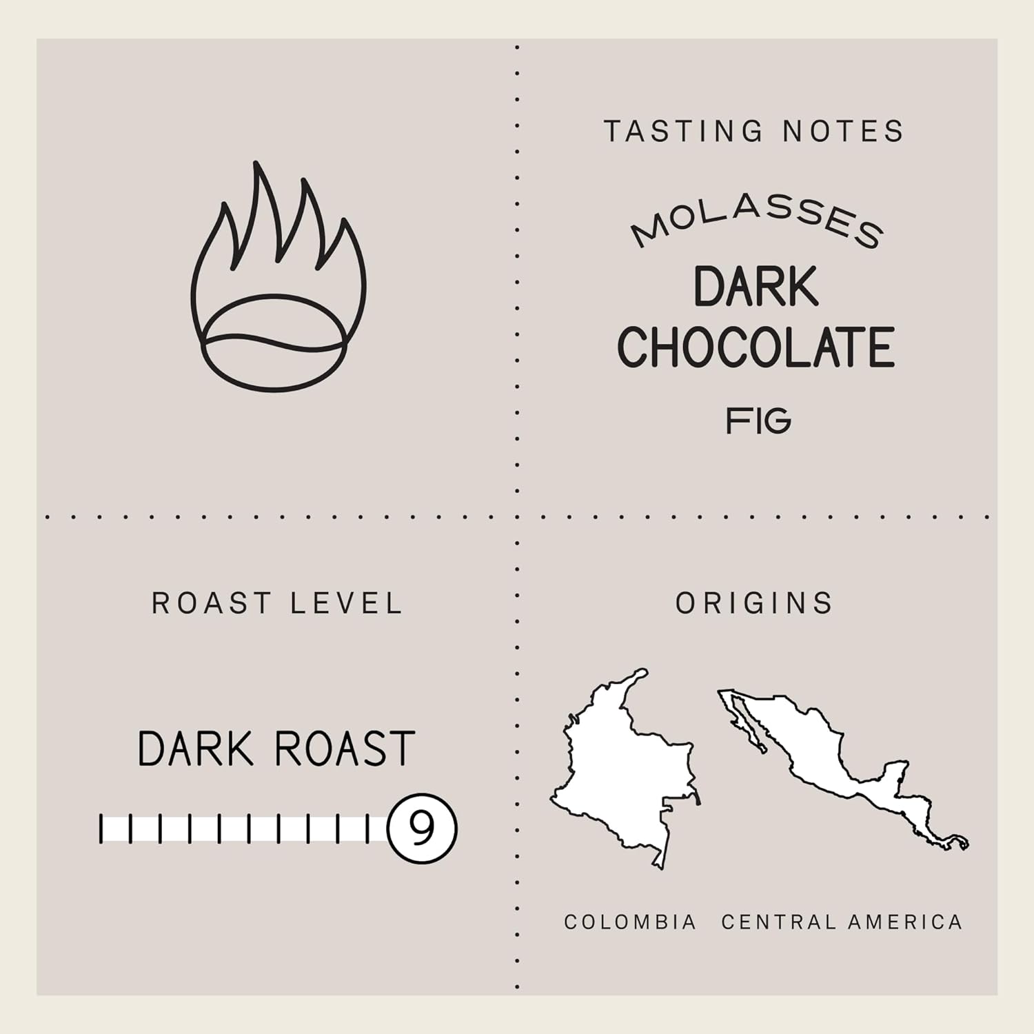- BEHIND THE BLEND: Sourced from Colombia and Central America, Bronson Blend is our take on French Roast. Our darkest profile yet, Bronson French Roast Blend capitalizes on caramelization to achieve a silky dark chocolate and raw sugar sweetness capable of only high-grown specialty coffees. Anyone who enjoys an extra bold coffee will love this. Tasting notes of Molasses, Dark Chocolate and Fig.