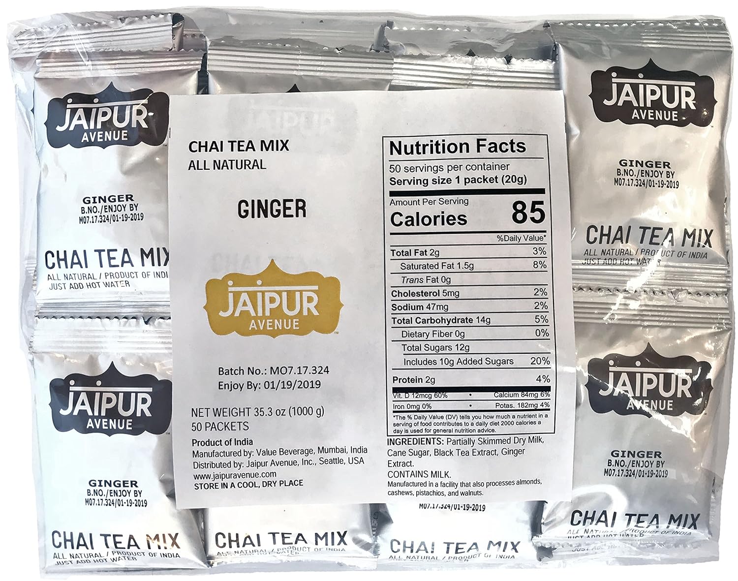 - INSTANT GINGER CHAI, ANYTIME, ANYWHERE: Whip up a delicious cup of ginger tea in seconds with gluten-free ginger chai tea mix by Jaipur Avenue. Designed for convenience without compromising on flavors, just add hot water for a heartwarming chai or mix with chilled milk and ice for a refreshing summer treat. Made with Assam black tea, ginger, premium dry milk, and natural cane sugar, this tea mix by Jaipur Avenue is the ideal ginger chai latte mix to make chai tea latte in an instant.