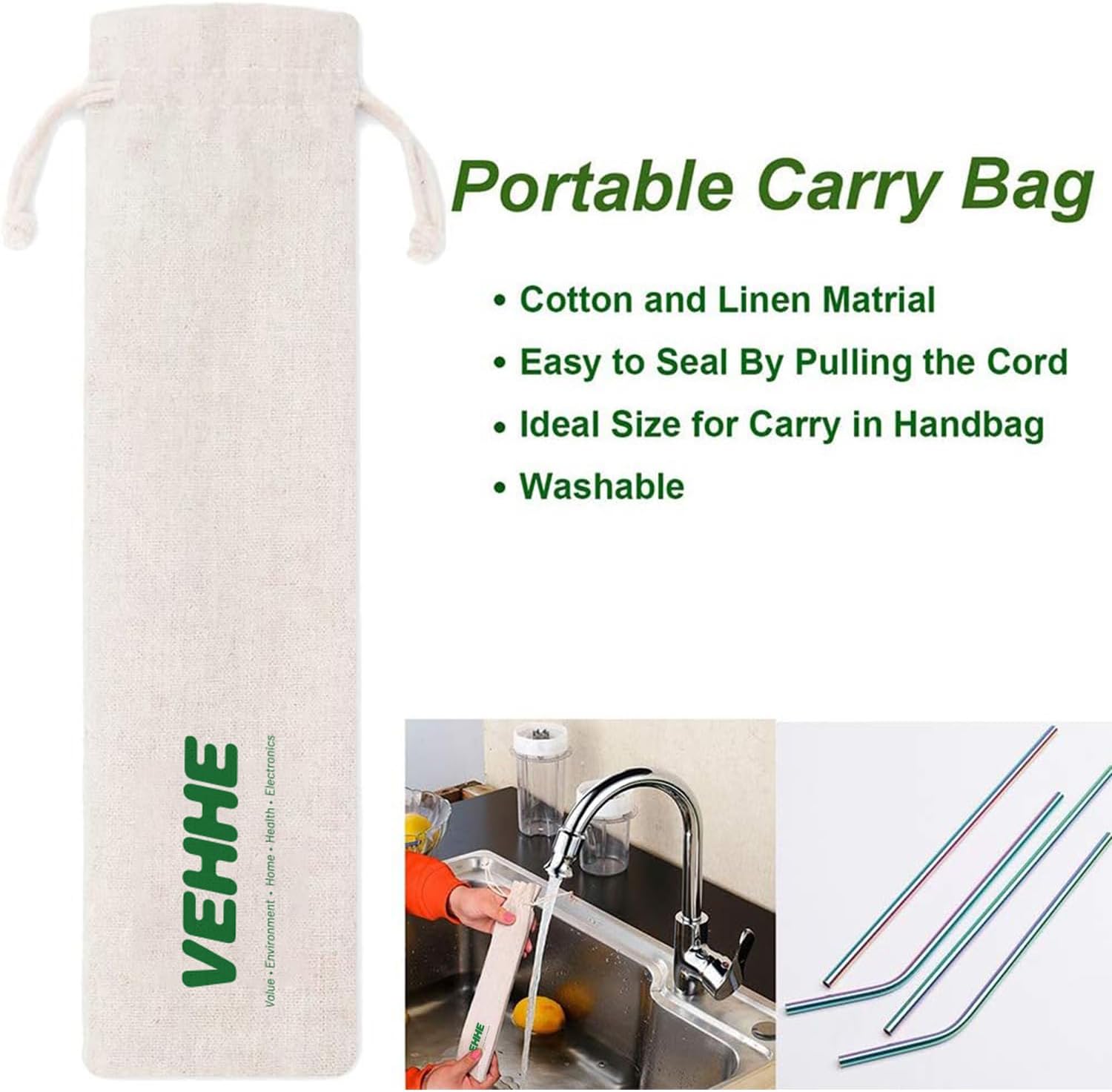- PORTABLE BAG & MULTI - FUNCTIONAL: Modern and sleek design, with the Cotton and Linen Material bag, this drinking stainless steel straws is easy to carry by your handbag and it is easy to seal by pulling the cord. These colored metal straws look equally beautiful in a cocktail or a smoothie, which add fun to any party, trendy for family reunion, girls night out,cocktail party, picnics, boating and so on. So, why not carry them everywhere with you and become crazy rainbow straw fashionistas?