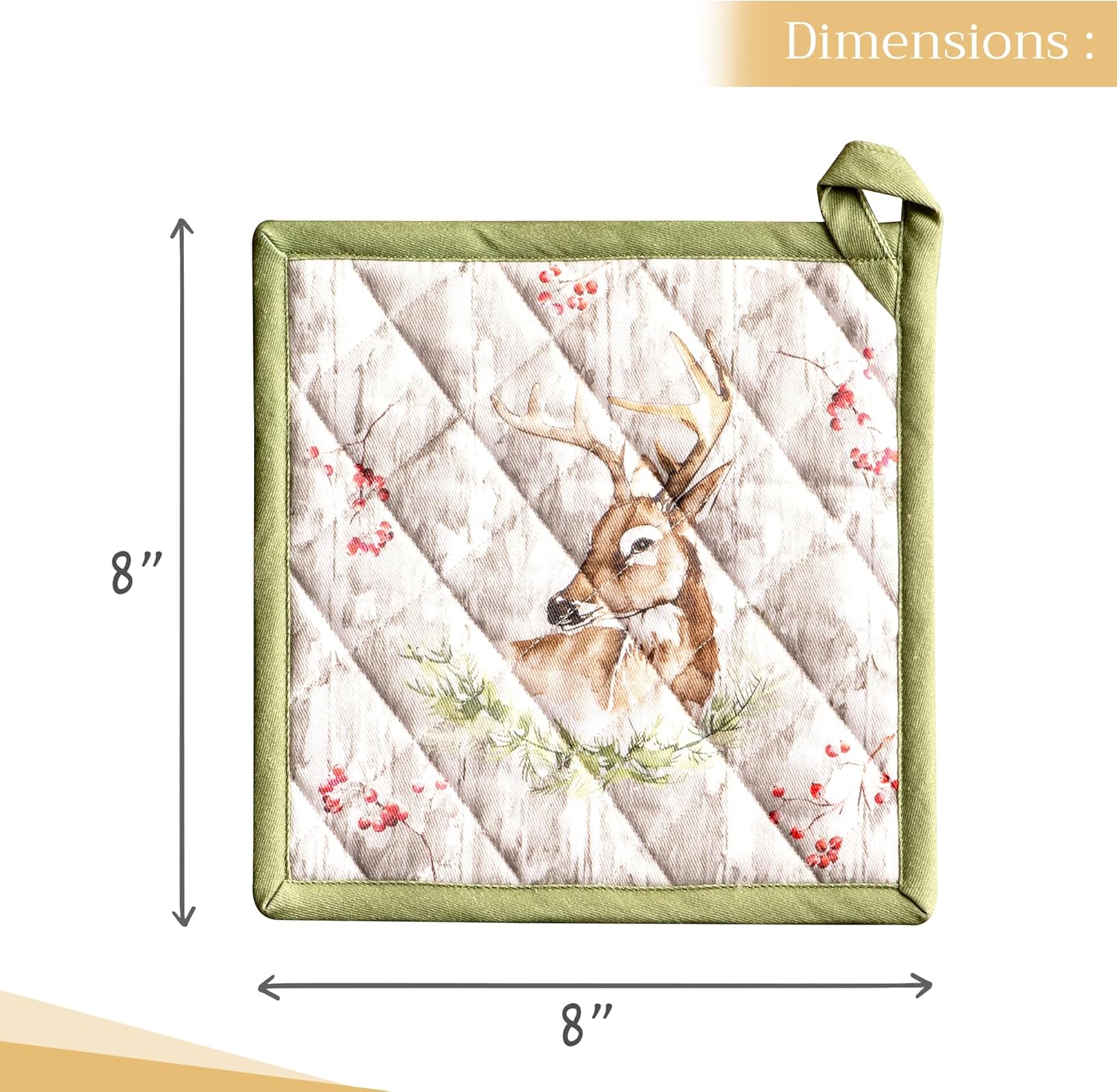 Maison d' Hermine Pot Holders 100% Cotton Heat Resistant Potholders 8" x 8" Hot Pads with Loop BBQ, Cooking, Baking, Grilling, Kitchen, Handling Hot Pans (Pack of 1, Mountain Life)