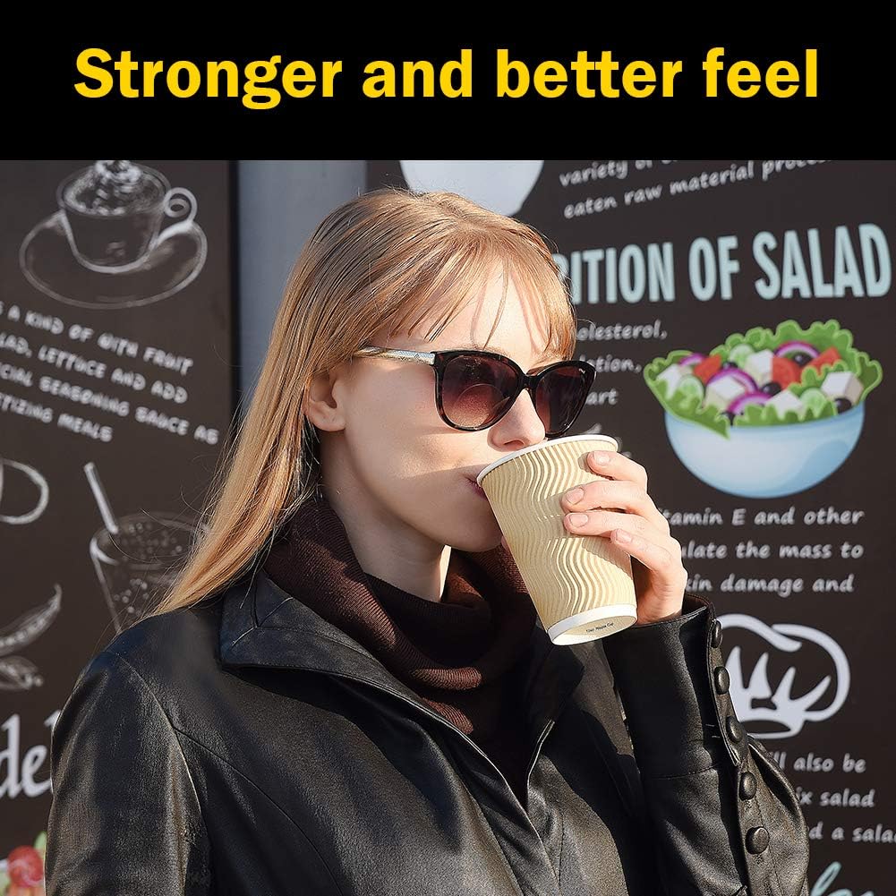Disposable Paper Coffee Cups with Lids, 100 pack 12 oz Ripple Wall Insulated To Go Coffee Cups for Hot/Cold Beverage, Recyclable Takeaway Drinking Cups for Home Office Cafe Party