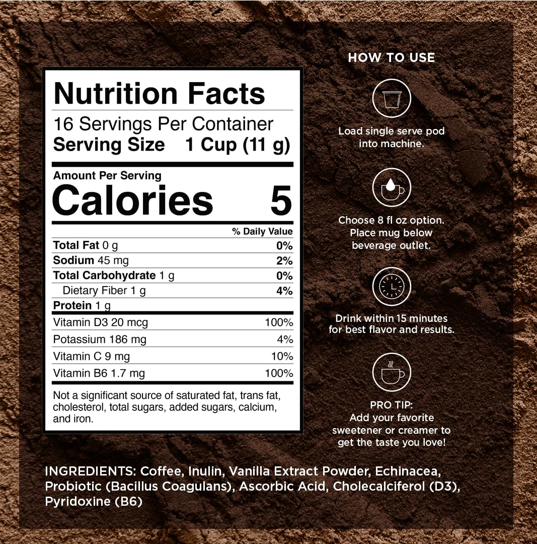 VitaCup Immunity Coffee Pods, Wellness Boost with Antioxidants, Echinacea, Probiotics, Vitamin C & D3, Medium Dark Roast, Recyclable Single Serve Pod Compatible with Keurig K-Cup Brewers,64 Ct