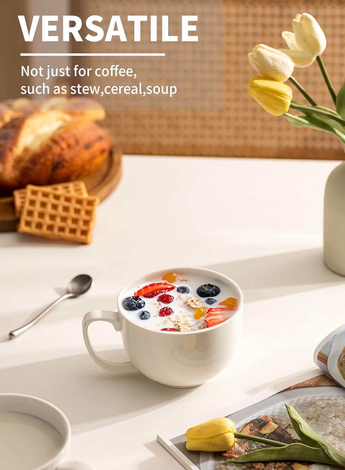 - Wide Mugs, A Favorite of Latte Lovers - Normal coffee mugs are not big enough to make the perfect latte. Teocera white mugs have a wide opening(4.6 inches) to distribute the milk foam into the coffee evenly, creating latte art. Everyone has a chance to be a barista.