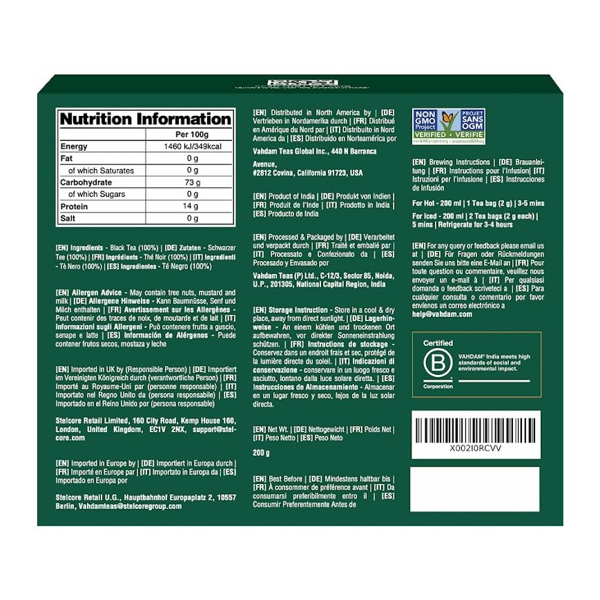 - 100% Pure English Breakfast Tea - The tea, grown and processed without synthetic pesticides, fertilizers, or GMOs, promotes sustainable farming practices. Free from artificial flavors, it ensures higher quality and safety for a truly pure and enjoyable tea experience.