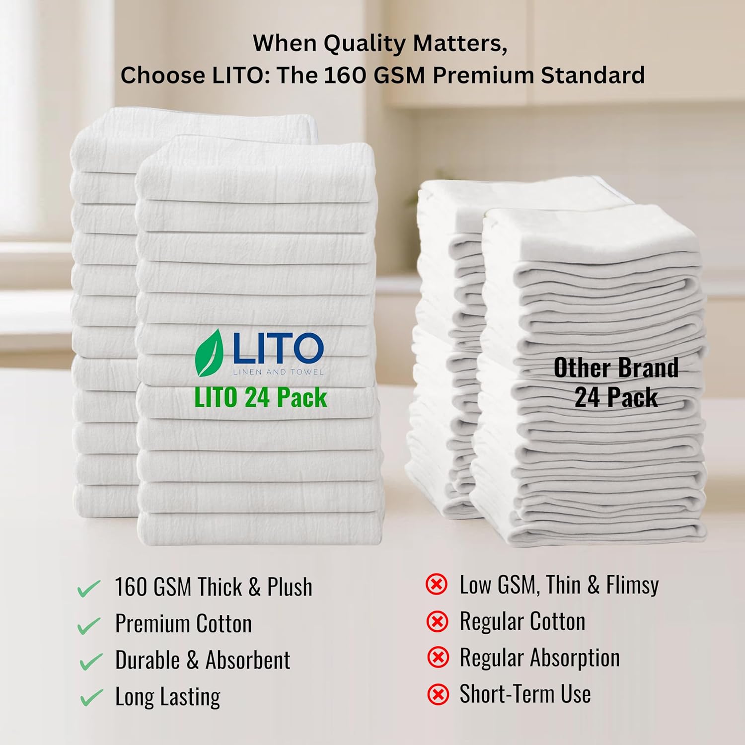 - PREMIUM QUALITY :These Flour Sack Tea towels are meticulously fashioned from 100% ring-spun cotton fabric with a thread count of 130, guaranteeing a soft, thick, quick-drying, and remarkably absorbent. These superior-quality Flour Sack Kitchen towels feature sewn edges and a convenient hanging loop, making them an excellent addition to any kitchen, bar, or farmhouse, enhancing the aesthetic appeal.