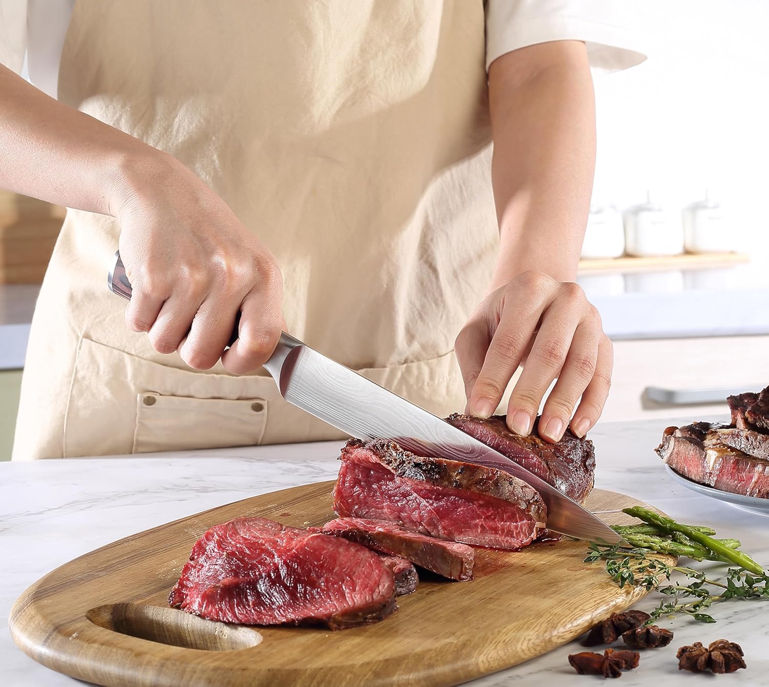 - RAZOR-SHARP BLADE EDGE: Hand-sharpened edge at 14-16 degrees per side for maximum sharpness & edge retention ensuring precision slicing every time. A sharp blade with premium stainless steel engineered to excel on all cuts of meats, including big roasts.