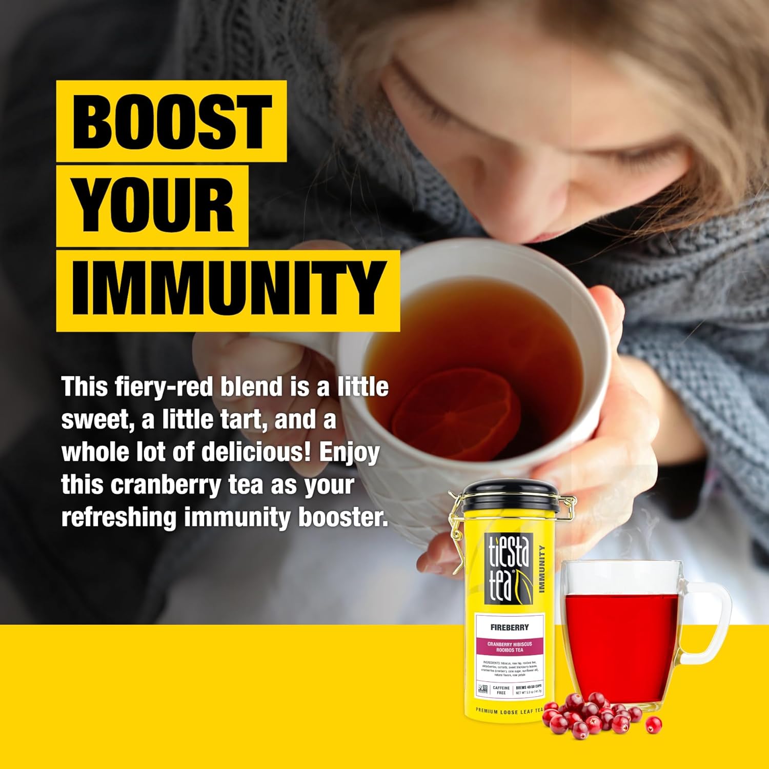 - CRANBERRY HIBISCUS ROOIBOS TEA: Indulge in the invigorating fusion of tangy cranberries and vibrant hibiscus flowers, igniting a fiery-red rooibos tea that's bound to fuel your body's defenses. Enjoy it hot or refreshingly iced, and relish the essence of summer with every sip.