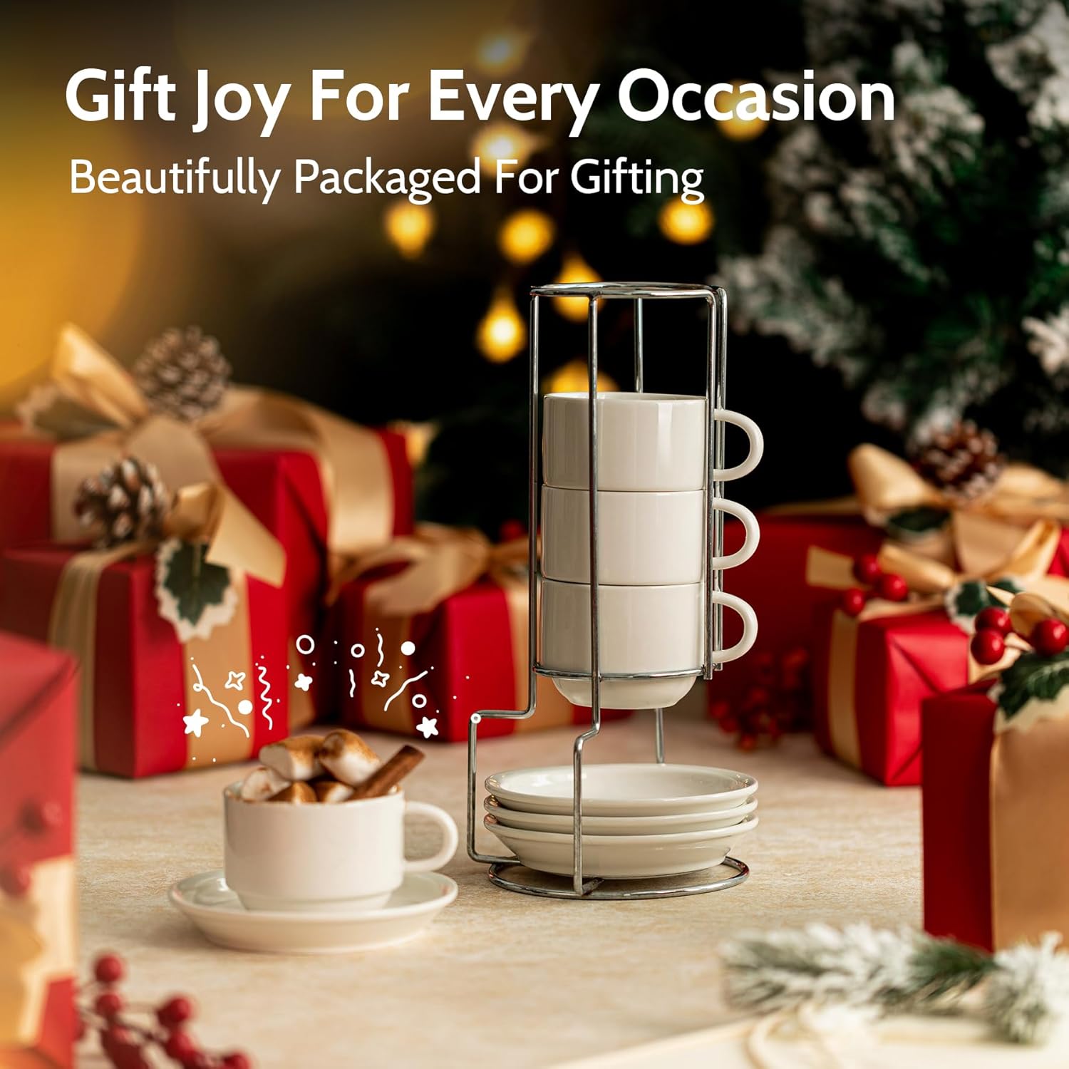 - REDEFINING CONVENIENCE IN EVERY CORNER: Transform your living space with Space-Saving & No Mess perfection. Our innovative stacking rack design keeps your cup set together, occupying just the space of one saucer. Say goodbye to clutter – even the tiniest nook becomes tidy with this compact solution, ensuring your coffee corner remains pristine and mess-free. Enjoy the simplicity of organized living.