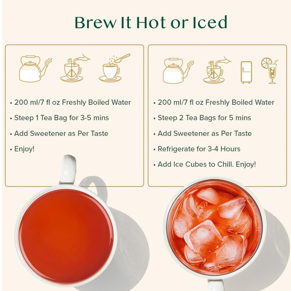 - Full-Flavor Tea Bags - High-quality tea leaves in plant-based biodegradable tea bags with its pyramid shape, the tea leaves are able to unfurl fully, releasing rich flavors for an aromatic tea experience.