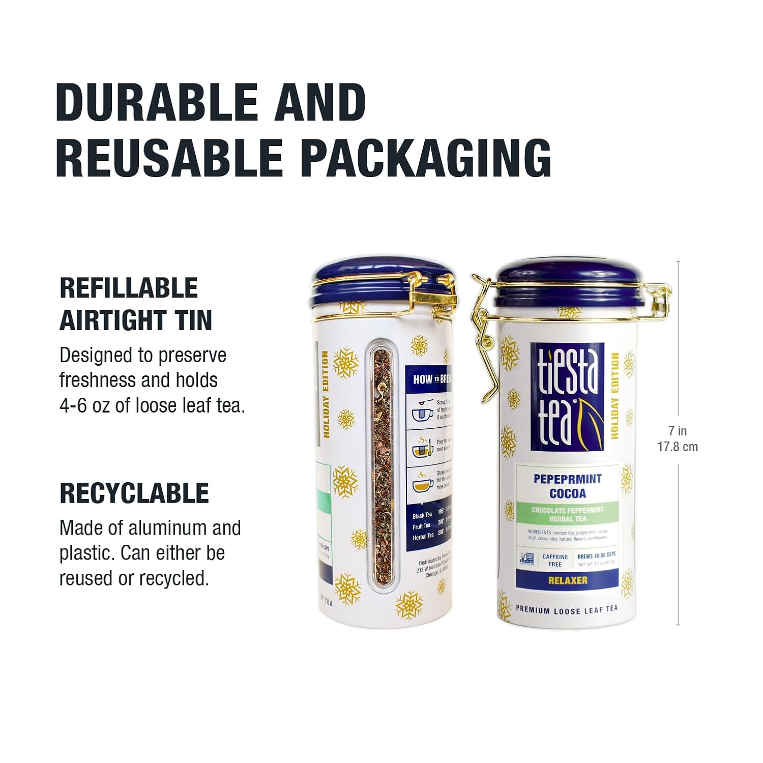 Tiesta Tea - Cozy Peppermint Cocoa, Loose Leaf, Chocolate Peppermint Herbal Tea, Premium Blend, Non Caffeinated, Make Hot or Iced Tea & Up to 50 Cups - 3 Ounce Refillable Tin