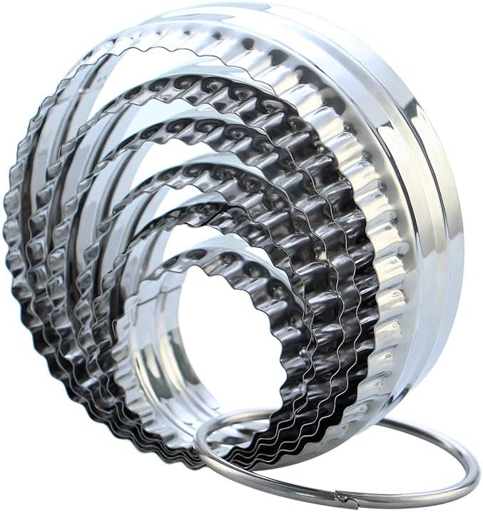 - ✔ The Fluted Cookie Cutter Set including 6-piece double sided round cookie cutters. Each cutter has a fluted side and a plain side.