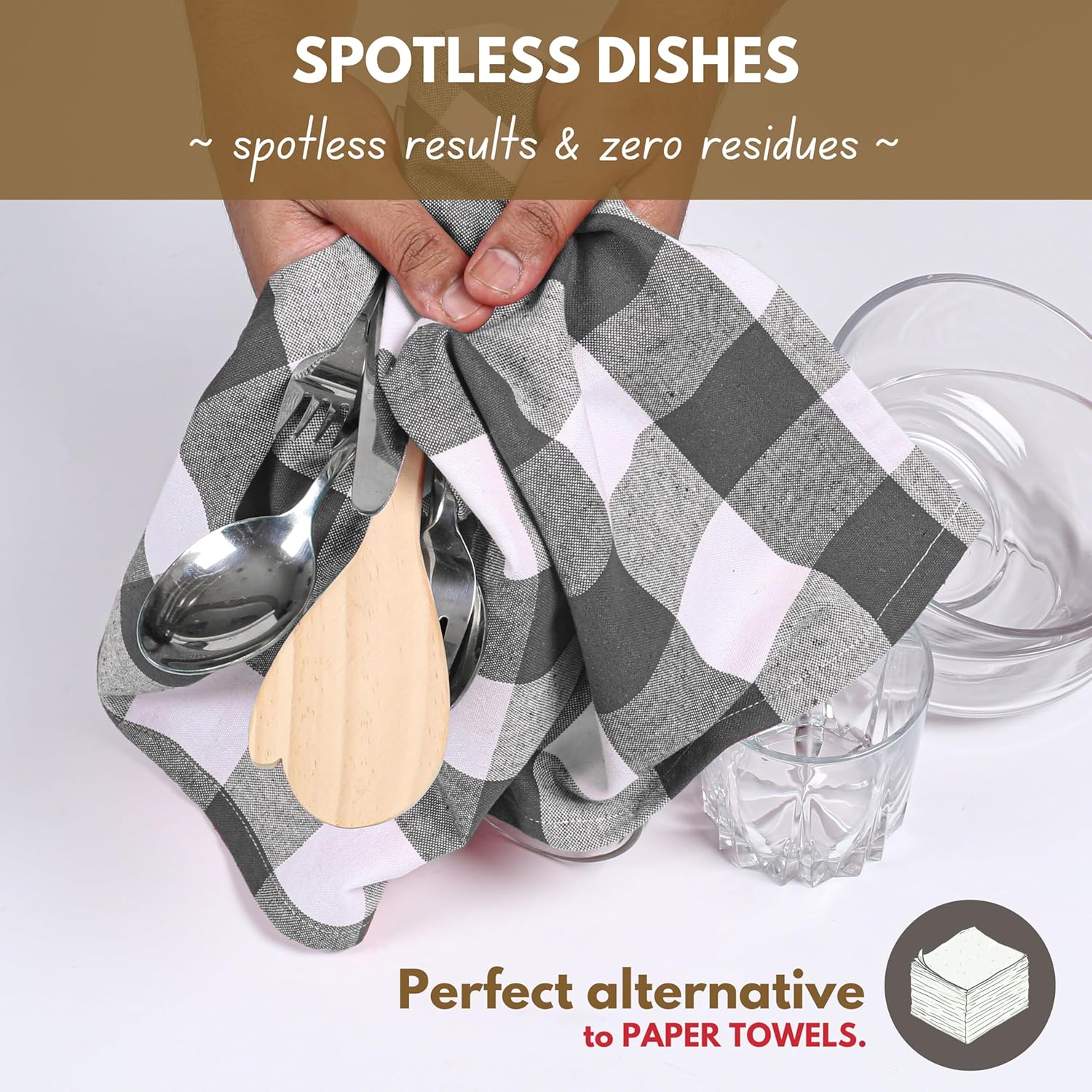 - 100% COTTON MATERIAL: Enjoy our soft, durable, and absorbent towels, perfect for everyday kitchen tasks.