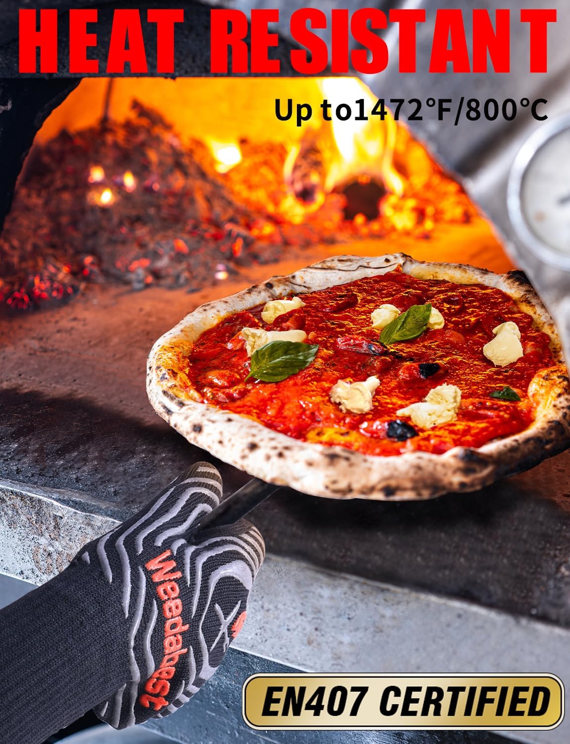 WEEDABEST Hot BBQ Gloves Heat Resistant Kitchen Oven Mitts Professional Long Heat Resistant Cooking Gloves for Grill,Grilling,Smoker,Barbeque,13.5 inch-Gray