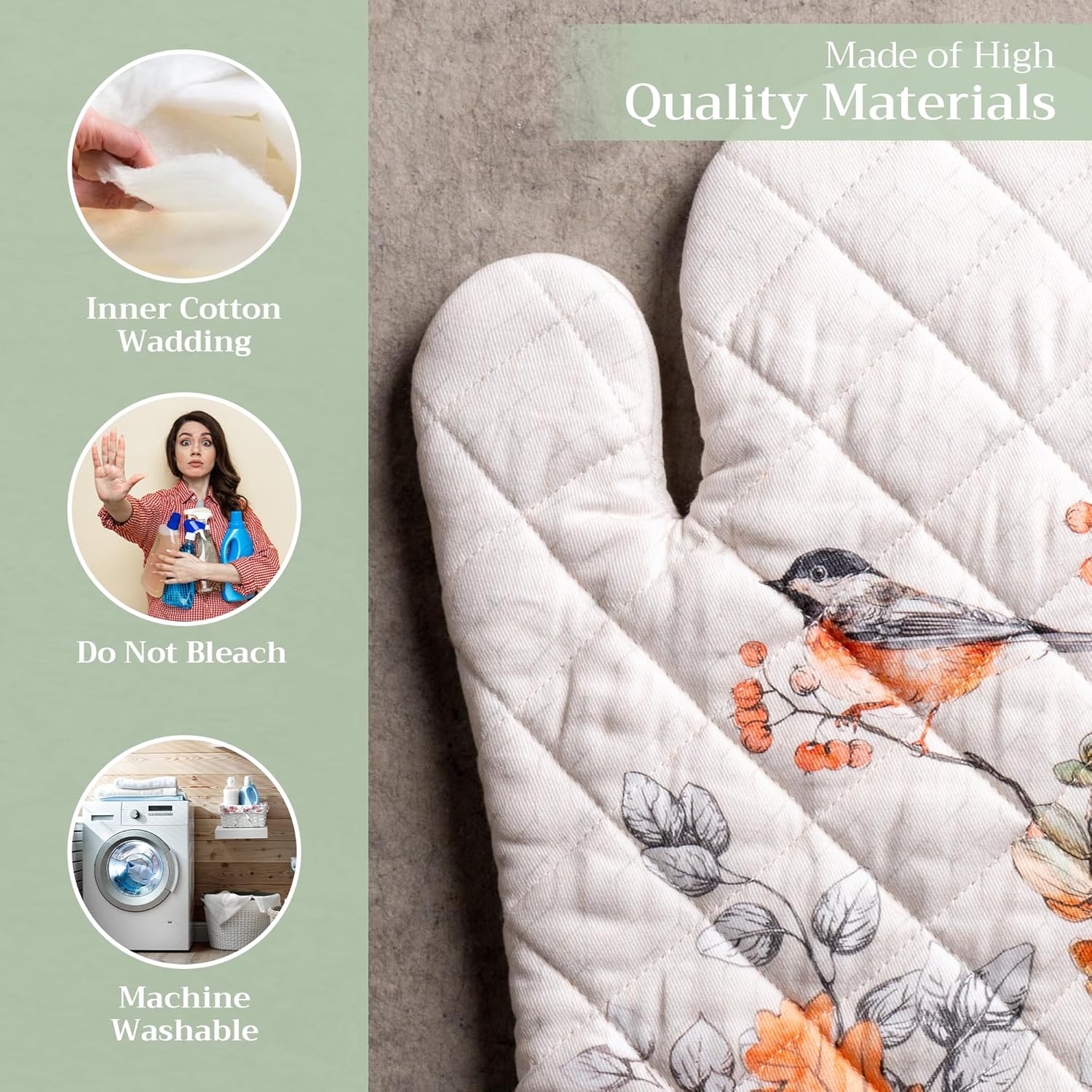 - 100% Quilted cotton: Crafted from thick, durable quilted cotton, this heat resistant oven mitt provides a soft feel, safe handling, and lasting performance. A must-have kitchen accessory for everyday cooking, roasting, or baking tasks