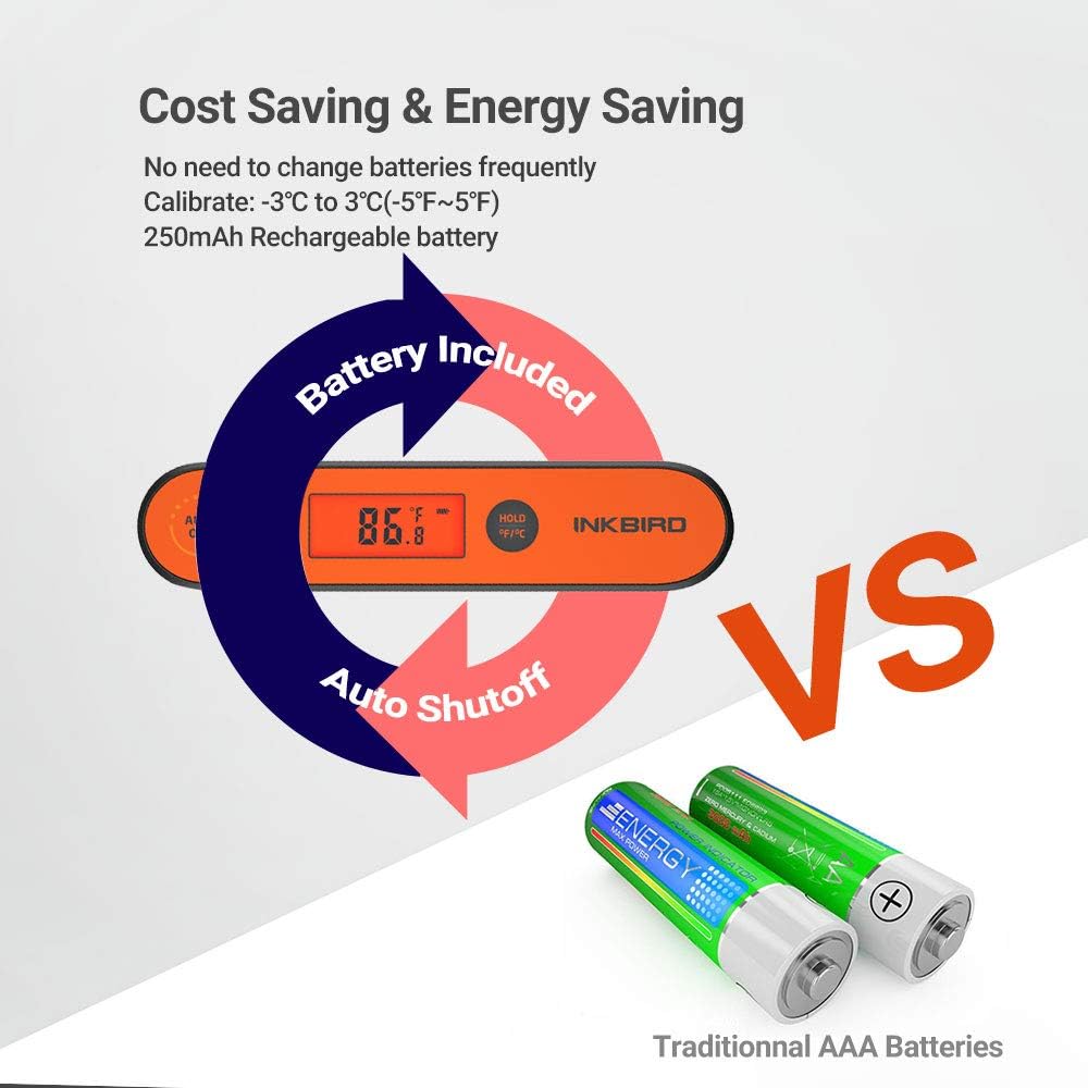 - ✌【Easy Operation & Convenient Storage】: The Kitchen meat thermometer is simple to operate, open it to turn on the device and fold the probe back to turn it off. 180 degree foldaway probe design and the internal magnet make storage conveniently.✔ The Magnetic back make the inkbird candy thermometer possible to adsorb on the surface of household appliances.
