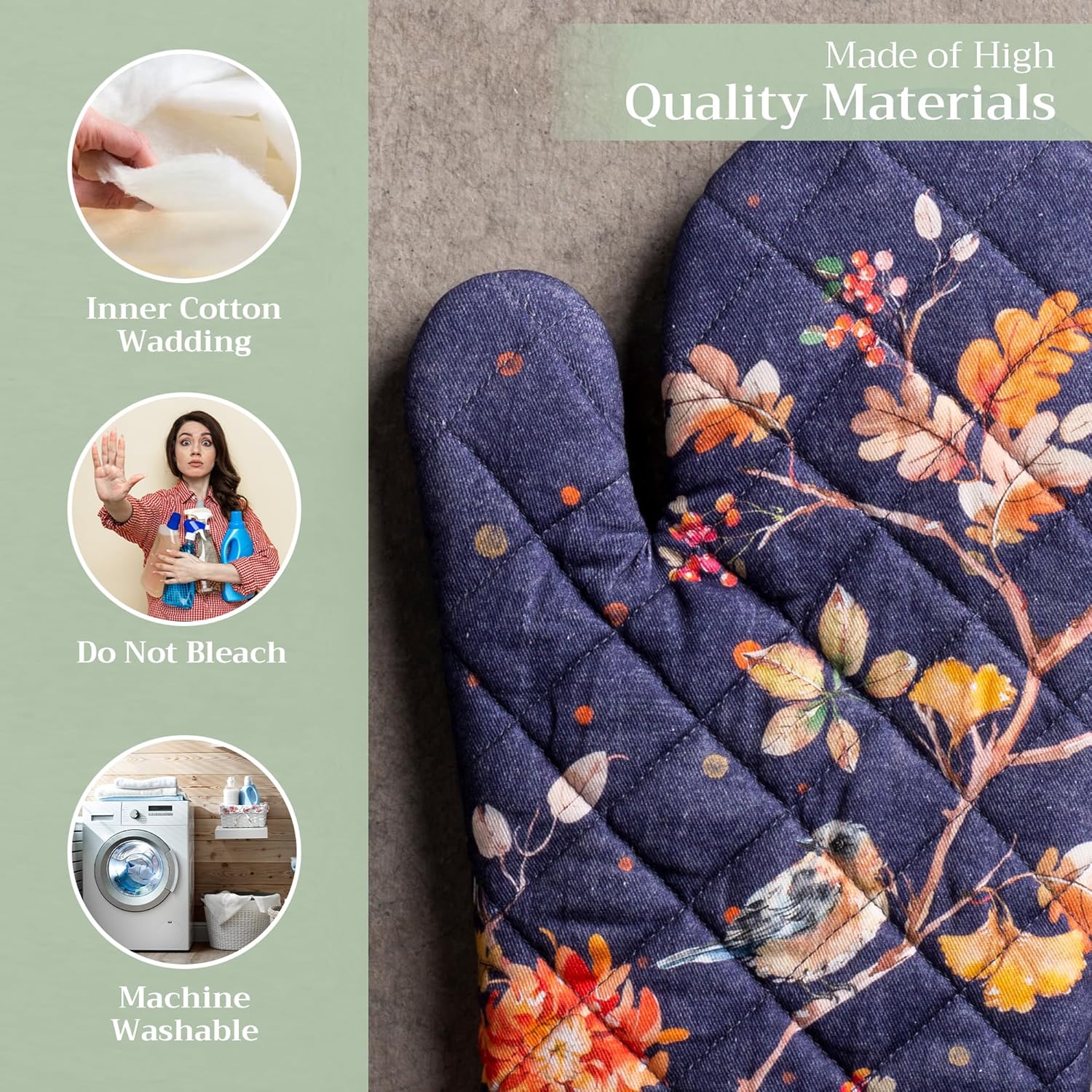- 100% Quilted cotton: Crafted from thick, durable quilted cotton, this heat resistant oven mitt provides a soft feel, safe handling, and lasting performance. A must-have kitchen accessory for everyday cooking, roasting, or baking tasks