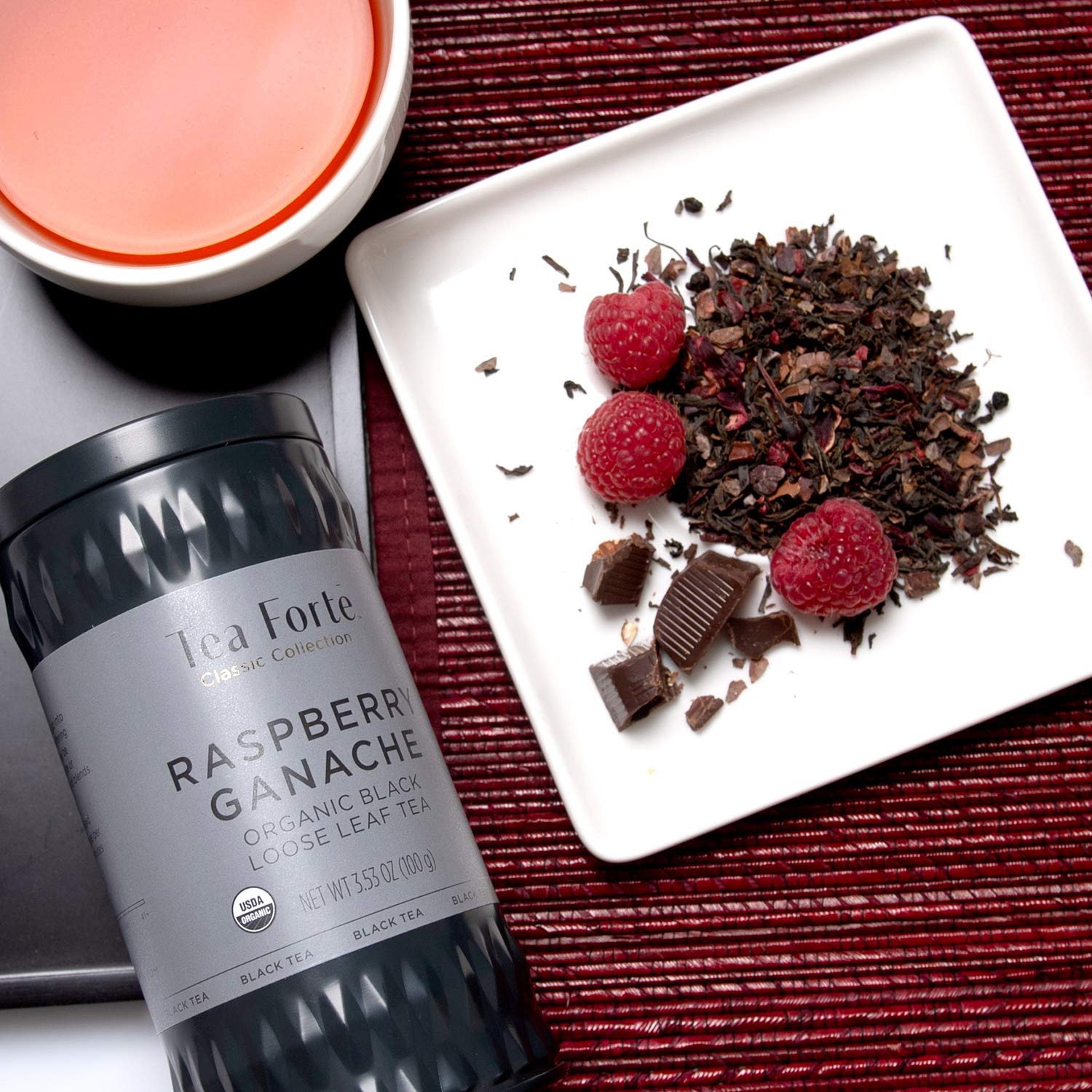 Tea Forte Raspberry Ganache Premium Organic Loose Leaf Caffeinated Black Tea Blend Canister, Makes 35-50 Cups