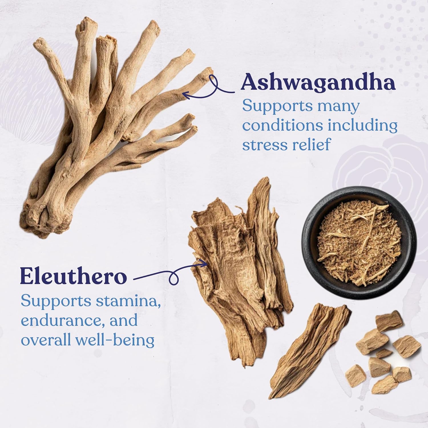 - THE AYURVEDIC ABILITY OF ASHWAGANDHA — We’re all more stressed out and “plugged in” than ever before. Organic Ashwagandha extract (Indian Ginseng) has been used for centuries in traditional medicine for its stress reducing, adaptogenic benefits, claims that have been backed up in scientific research. We’ve combined this extract with organic Eleuthero root extract (Siberian Ginseng), and Holy Basil extract (Tulsi) to create this mind-calming, body-balancing, delicious medium roast coffee.