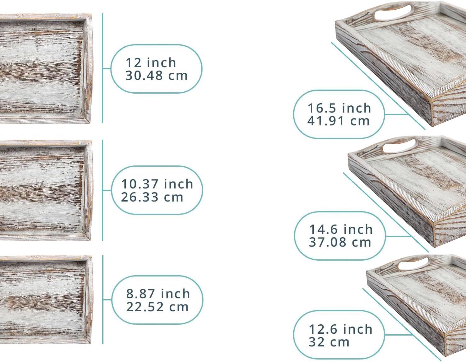 - Convenient dimensions: Measuring around 16.5” Wide and 12” Length for the larger tray, 14.6” Wide and 10.37” Length for the medium tray, and 12.6” Wide and 8.87” Length for the smallest tray, they are Perfect for serving guests drinks and appetizers, breakfast-in-bed or for decorating your coffee table.